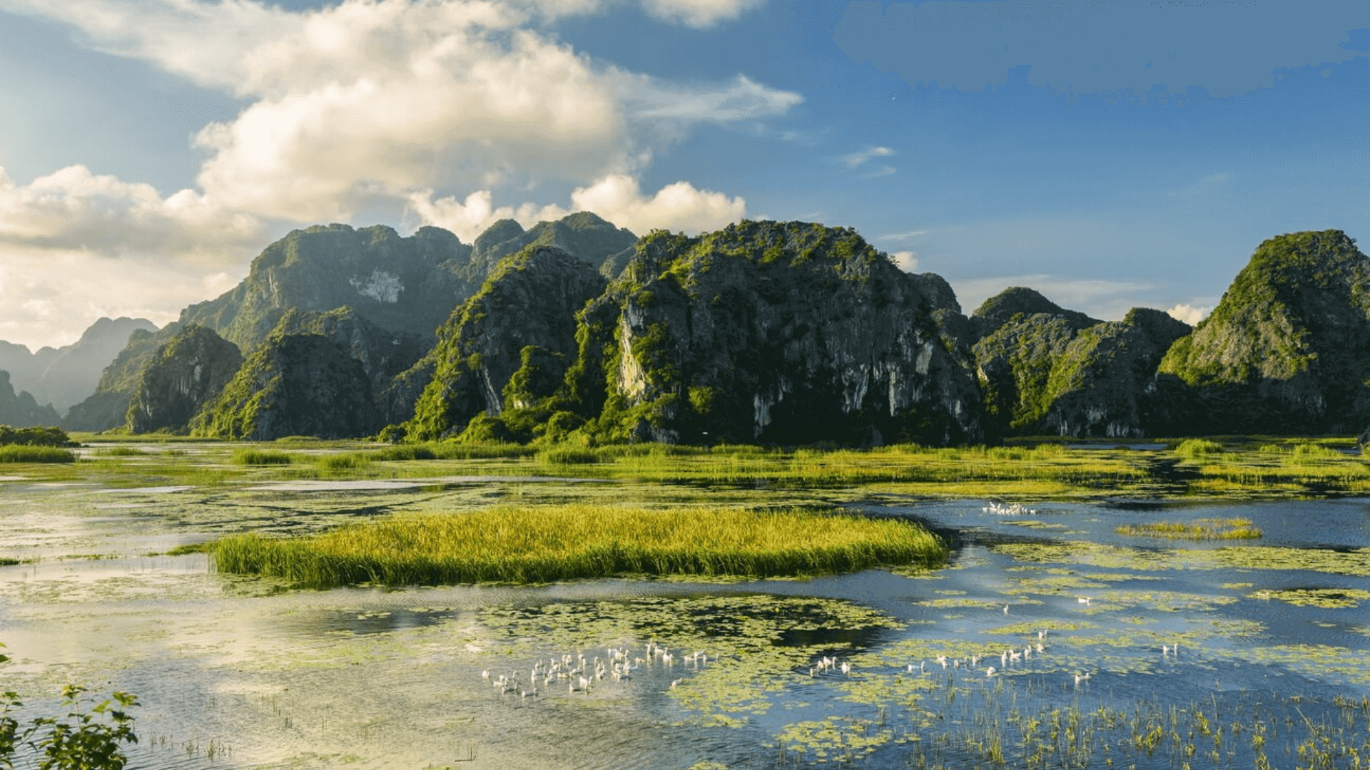 The vast lagoon landscape,majestic caves,and historical and cultural imprints combine to create a unique space of Van Long lagoon. Visit Van Long lagoon once - the land that preserves the peace of the soul to feel the tranquility and freshness along with the poetic and lyrical beauty of this place!