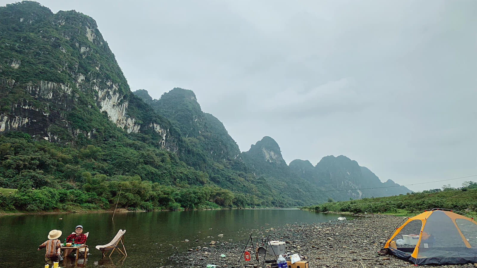 Thêm sự lựa chọn nữa nếu như bạn không thuê bè,thì có thể tự tạo một khu camping cho mình bằng việc đem theo bàn ghế,lều trại,đồ ăn,thức uống. Đầu nguồn là chỗ lý tưởng để bạn có thể kê bàn,ghế ra ngồi ngắm cảnh ở trên mặt sông,ngâm chân dưới dòng nước mát lạnh. Vì chỗ đó không quá sâu,nước chảy nhẹ và đều rất phù hợp cho các gia đình có con nhỏ. Dựng thêm một chiếc lều xinh xinh bên cạnh bờ sông,đốt ít than hồng nướng đồ ăn,nhâm nhi một ngụm bia,cảm giác như mọi bộn bề,hối hả nơi đô thị đã hoàn toàn được rũ bỏ,thả hồn vào trong cảnh sắc hữu tình nơi đây.