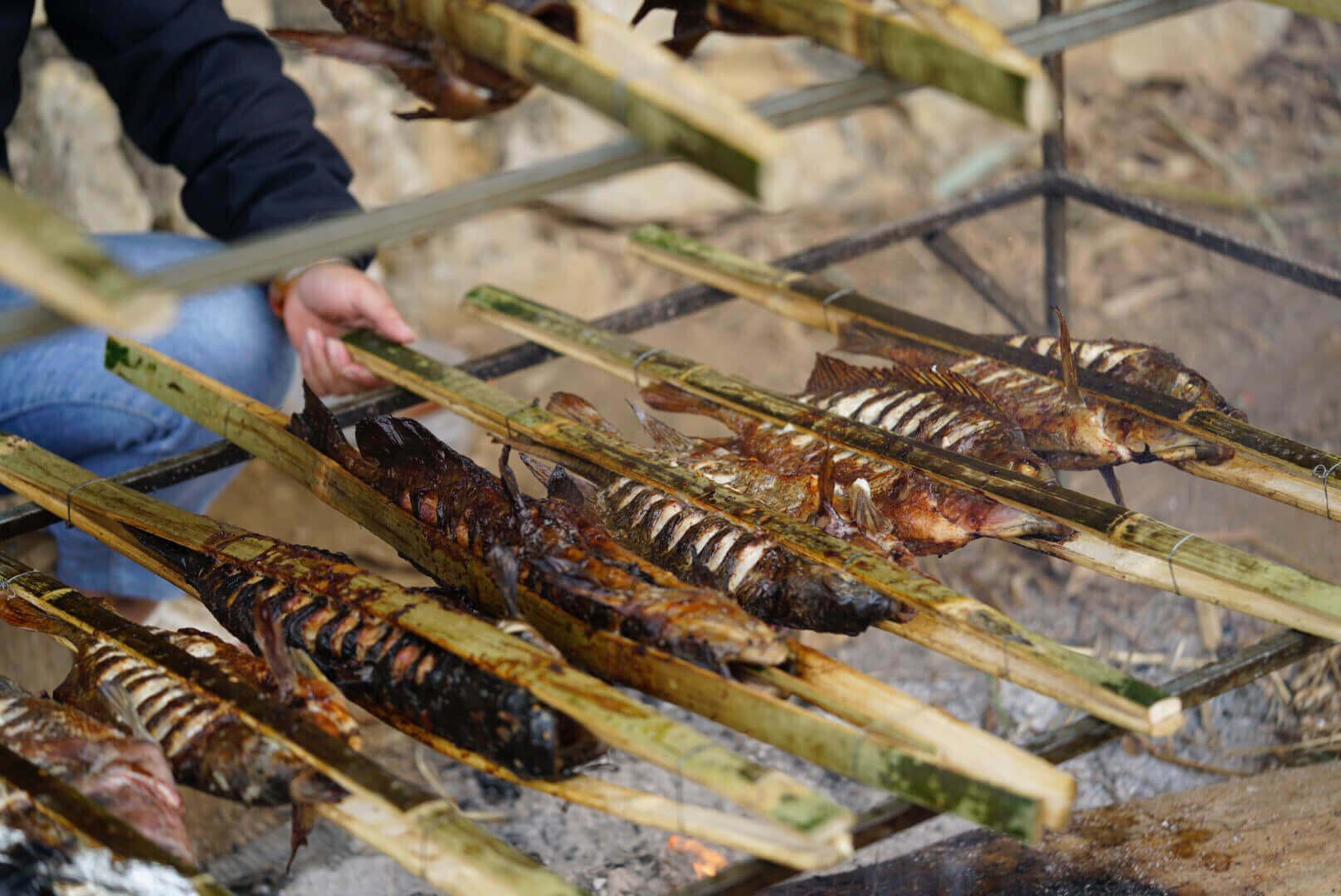 Nếu đi cùng nhóm bạn,nên thuê một tàu cá đi cùng để trong khi chúng ta bơi thuyền thì họ sẽ chuẩn bị cá nướng bắt trực tiếp trên hồ. Tiền thuyền phao không tính mà sẽ tính vào phí dịch vụ thuê tàu luôn. Cảm giác vừa được leo lên từ hồ nước xanh mát,được thưởng thức ngay món cá nướng thơm ngọt mới chính là trải nghiệm trở về thiên nhiên đáng nhớ nhất.
