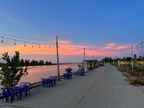 Tối tối,bờ kè Đức Lợi lên đèn,hai bên được dân kê bàn ghế,bán buôn đồ ăn vặt cho khách đến chơi và cả dân địa phương dạo biển. Đèn đóm sáng rực,người người cười nói rôm rả. Không xô bồ,chẳng bon chen,chỉ vậy thôi mà thấy thương không biết đâu cho hết rồi.