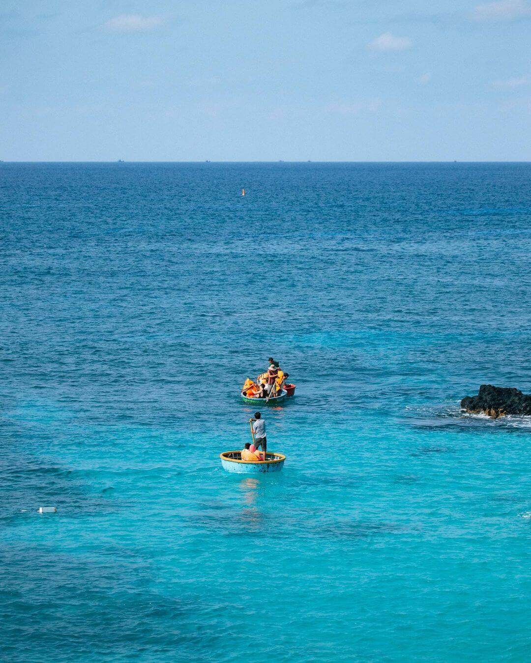 Ngoài lặn ngắm san hô,mình còn tham gia chuyến tham quan quanh đảo bằng thuyền thúng. Đây là phương tiện di chuyển truyền thống của ngư dân địa phương,mang đến cho mình trải nghiệm rất độc đáo và mới lạ. Trên thuyền,mình có cơ hội ngắm nhìn toàn cảnh đảo từ xa,chiêm ngưỡng những vách đá cao vút và những rặng dừa xanh mát.