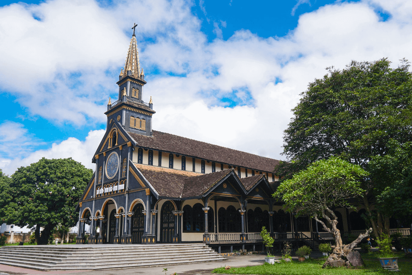 Also known as the "Armless Lady," the statue of Our Lady of Mang Den is a significant Catholic pilgrimage site in the Kontum Diocese. Located near National Route 24,this statue was sculpted in the image of Our Lady of Fatima but with features resembling a local highland woman and notably without arms. The statue,crafted from reinforced concrete and placed on a natural stone base,stands as a symbol of faith and a site of historical interest.