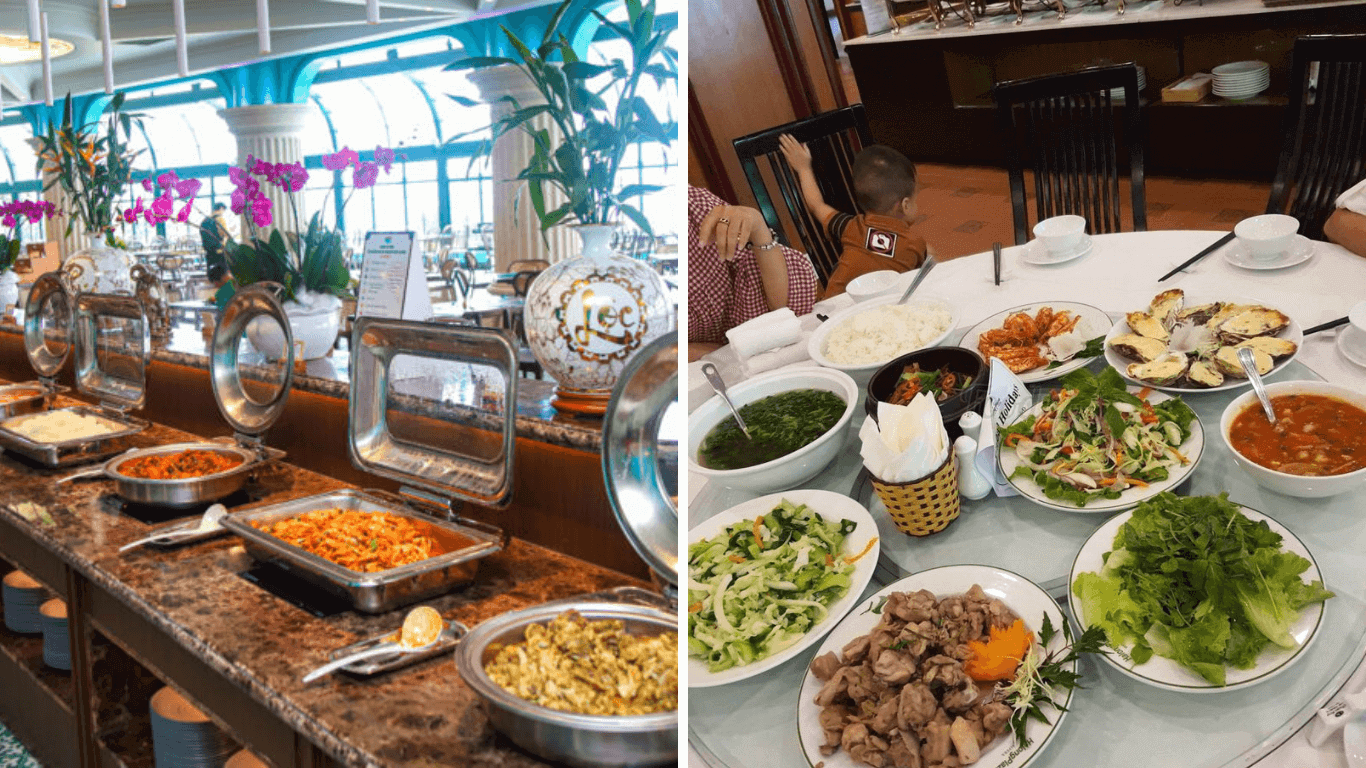 Các món ăn được sắp xếp theo từng dãy buffet,giúp khách hàng dễ dàng lựa chọn và thưởng thức theo khẩu vị riêng. Những món khai vị tinh tế mở đầu cho bữa tiệc,tạo ra sự kích thích cho vị giác. Món chính đậm đà cùng những món tráng miệng thanh mát góp phần hoàn thiện bữa ăn của khách hàng. Sự tinh tế trong cách trình bày món ăn làm cho mỗi đĩa thức ăn trở thành một tác phẩm nghệ thuật,mang đến cảm giác thỏa mãn sau mỗi bữa ăn.