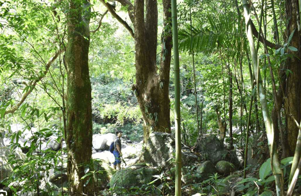 Tiếp đó,bạn sẽ phải đi bộ khoảng 3 km qua lối mòn trong rừng để chạm đến chân thác. Đoạn đường này có suối nhỏ,bãi cát và rừng cây tán rộng như ôm lấy lối đi. Mình thường dừng lại bên khe nước nho nhỏ để uống ngụm nước mát và chụp hình lưu niệm. Hãy chuẩn bị giày chống trượt và balô nhẹ để thoải mái di chuyển. Nhóm bạn của mình đã mang theo la bàn và bản đồ in,rất hữu ích khi trời mờ sương.