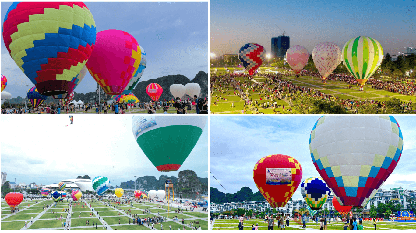 Lễ hội Khinh khí cầu tại TP Hạ Long đã trở thành một sự kiện không thể bỏ qua đối với những người yêu thích du lịch và khám phá. Mỗi năm,hàng chục khinh khí cầu đủ màu sắc bay lượn trên bầu trời Hạ Long,tạo nên một cảnh tượng tuyệt đẹp. Đây là cơ hội để du khách thưởng thức không gian rộng lớn của thành phố và vịnh Hạ Long từ một góc nhìn hoàn toàn mới.