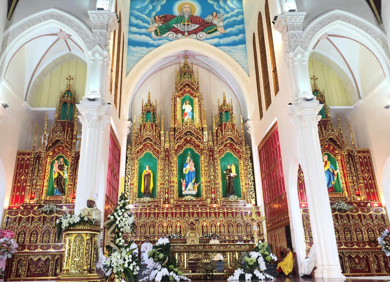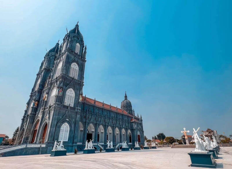 Khi mình bước vào nhà thờ,điều đầu tiên đập vào mắt là tháp chuông cao chót vót,tựa như một mũi tên chỉ thẳng lên trời. Hệ thống cửa sổ với những họa tiết hoa văn tinh xảo,kết hợp cùng các bức phù điêu chạm trổ công phu trên tường,tất cả như kể về câu chuyện Thánh Kinh. Mình như lạc vào không gian cổ tích,nơi mà từng chi tiết đều có thể mang lại cảm giác thiêng liêng và bình yên.