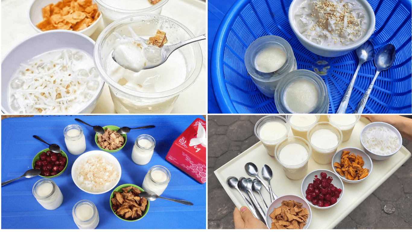 Sữa chua được sử dụng thường là loại tự làm hoặc chọn lọc từ những nguyên liệu chất lượng,mang đến độ mịn và vị chua thanh nhẹ. Khi kết hợp cùng nước cốt dừa béo ngậy và trân châu dai mềm,món ăn tạo nên sự hòa quyện độc đáo,vừa thơm mát vừa hấp dẫn.