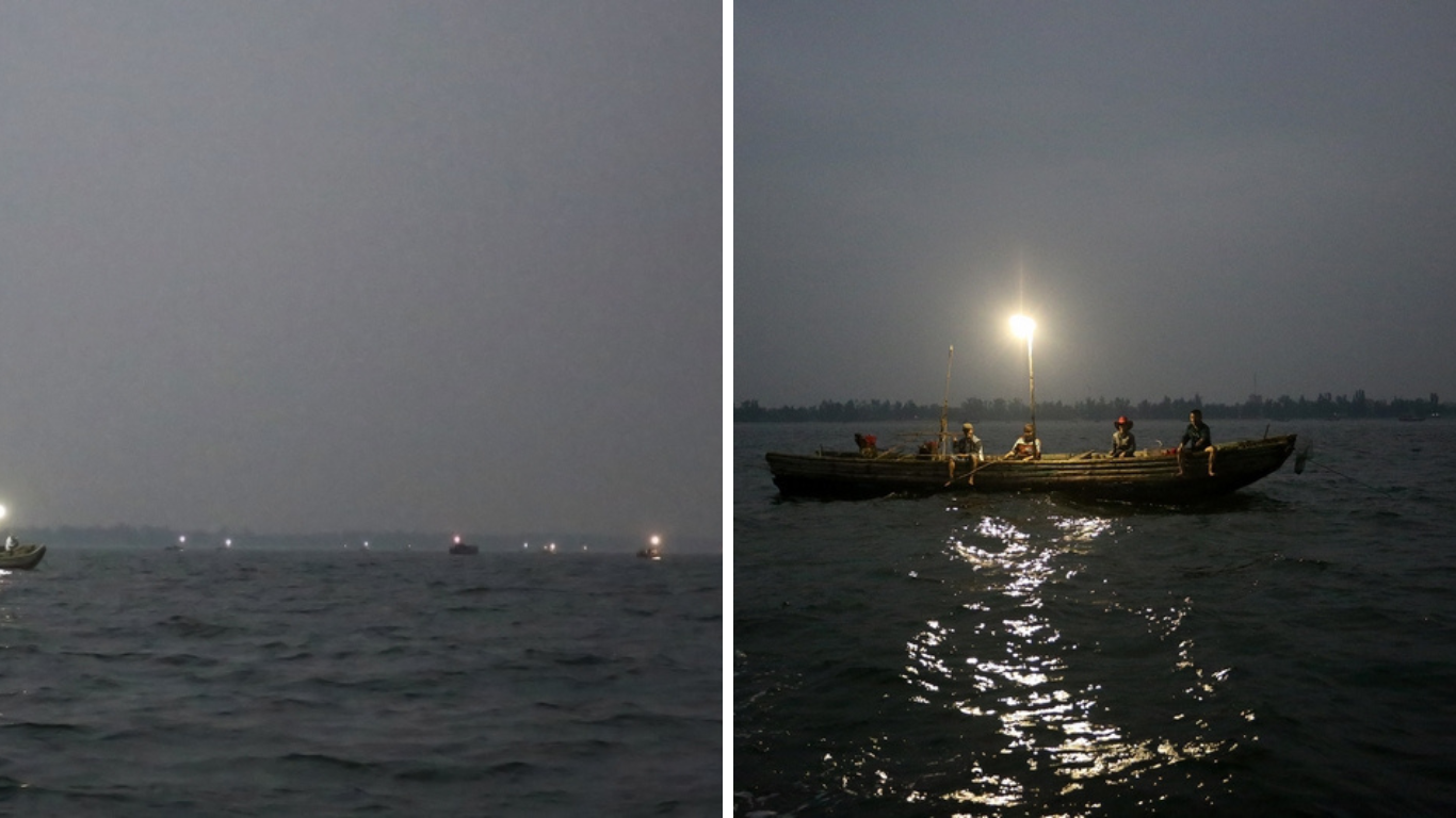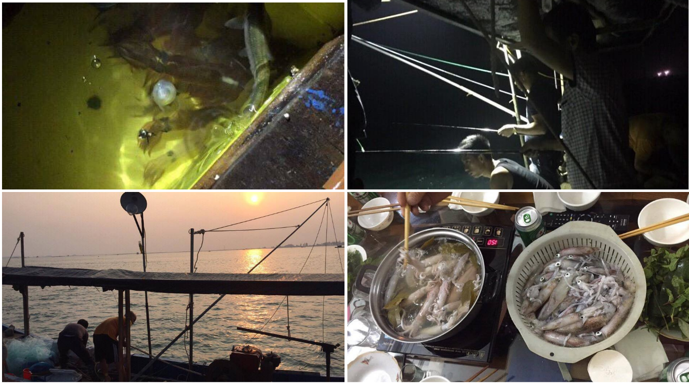 Niềm vui vỡ òa khi con mực đầu tiên được kéo lên,ánh bạc của nó lấp lánh dưới đèn tàu. Tiếng hò reo của mọi người tạo nên bầu không khí náo nhiệt giữa biển đêm. Từng con mực tiếp theo được đưa lên khiến khay đựng đầy dần,mang lại cảm giác chinh phục trọn vẹn. Đó là phần thưởng xứng đáng cho những giờ phút chờ đợi và cố gắng.