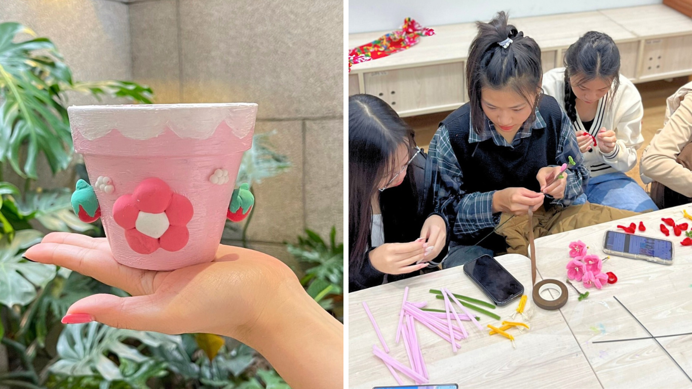 Mình rất ấn tượng với khu vực làm ốp điện thoại vì sự đa dạng của sticker,hạt trang trí và lớp phủ trong suốt. Bạn sẽ được hướng dẫn từ việc chọn màu nền đến trang trí họa tiết sao cho bền đẹp. Quá trình này khá nhanh,chỉ khoảng một buổi chiều,và thành phẩm có thể sử dụng ngay. Đây là cách thú vị để sở hữu chiếc ốp “độc nhất vô nhị” cho điện thoại.