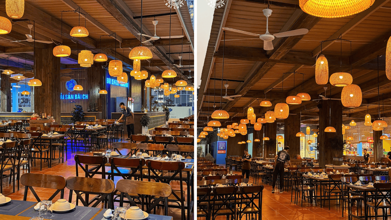 Vựa Hải Sản Bãi Cháy có diện tích lớn với thiết kế mô phỏng làng chài Bắc Bộ,tạo cảm giác thân thuộc và gần gũi. Kiến trúc gỗ cùng các chi tiết trang trí mang đậm hơi thở miền biển giúp thực khách cảm nhận được không khí truyền thống ngay khi bước chân vào. Mình cảm nhận được sự tinh tế trong cách bài trí từng góc nhỏ,vừa ấm cúng vừa tạo cảm giác thoáng đãng. Đây là điểm cộng giúp nhà hàng trở thành điểm đến lý tưởng cho những ai muốn thưởng thức hải sản trong không gian truyền thống.