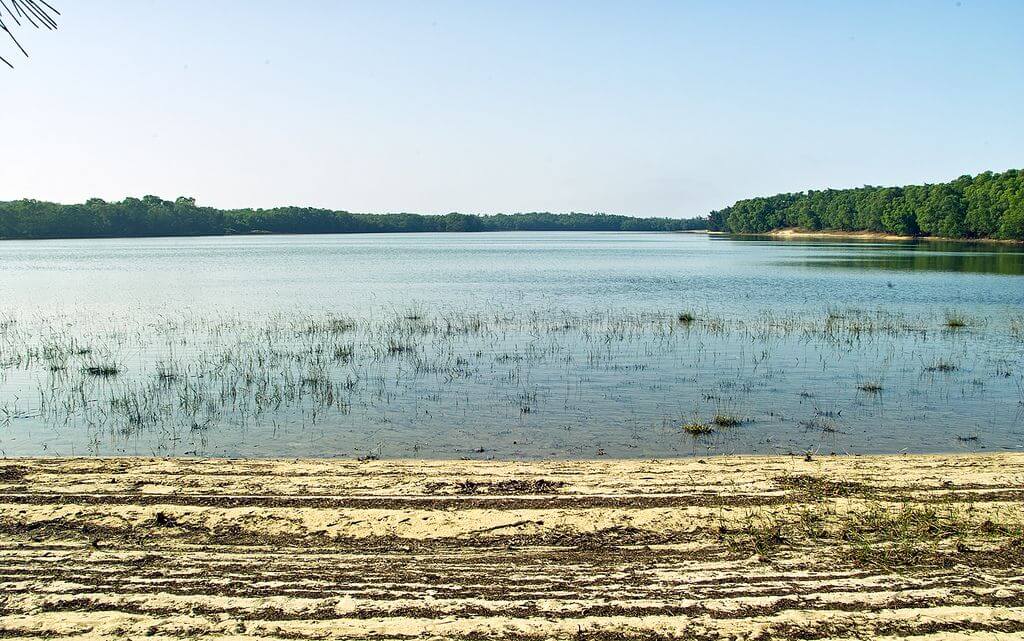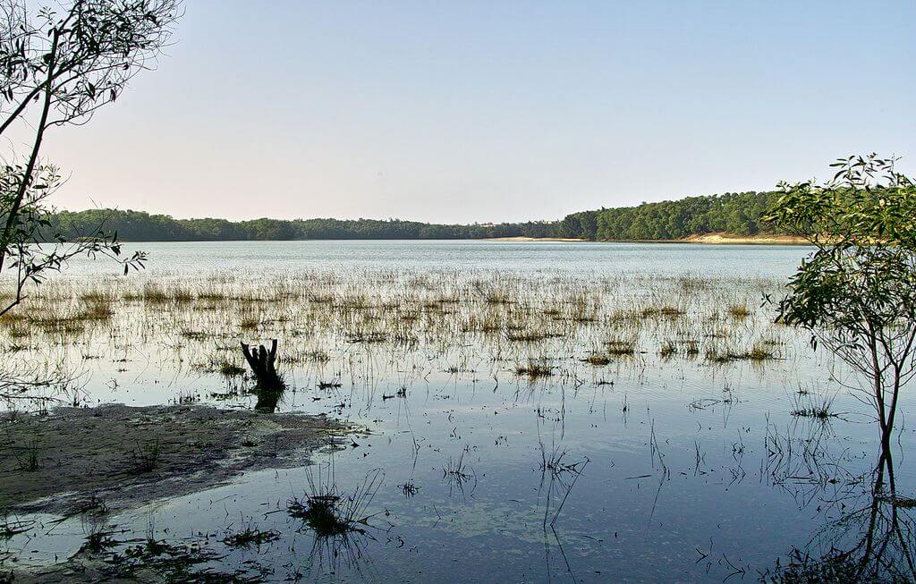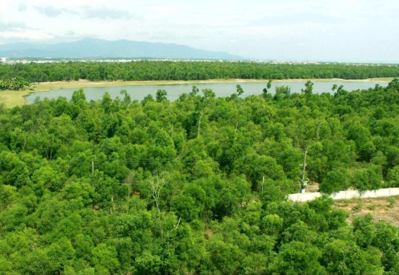 Để góp phần tạo nên vẻ đẹp mộng mơ của nơi này, những “nhạc sĩ tre” tài năng không ngừng “ca hát” nhẹ nhàng, tạo ra một bản hòa tấu êm dịu và nhẹ nhàng. Đứng trên một ngọn đồi cao nhìn xuống, bên cạnh bức tranh biển xanh rộng lớn, mây trắng hùng vĩ, chúng ta sẽ ngay lập tức nhận ra một hồ nước trong xanh, vừa bí ẩn vừa lãng mạn.