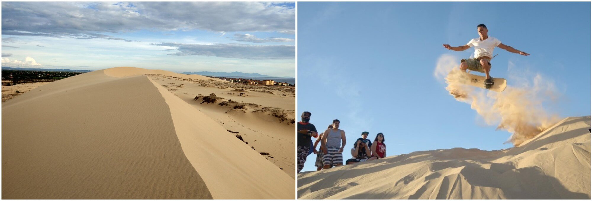 Bên cạnh đó,trò chơi trượt cát là trải nghiệm không thể bỏ qua. Với độ cao khoảng 100 mét,các triền cát nơi đây trở thành “sân chơi” lý tưởng cho những ai yêu thích cảm giác mạnh. Ngồi trên chiếc ván trượt,lao xuống từ đỉnh cồn cát,cảm nhận luồng gió mát lành và tiếng cát xào xạc dưới chân,du khách như hòa mình vào không gian bao la,rộng lớn. Với mức giá thuê ván chỉ 30.000 đồng,bất cứ ai cũng có thể tận hưởng trò chơi này một cách trọn vẹn mà không lo lắng về chi phí.