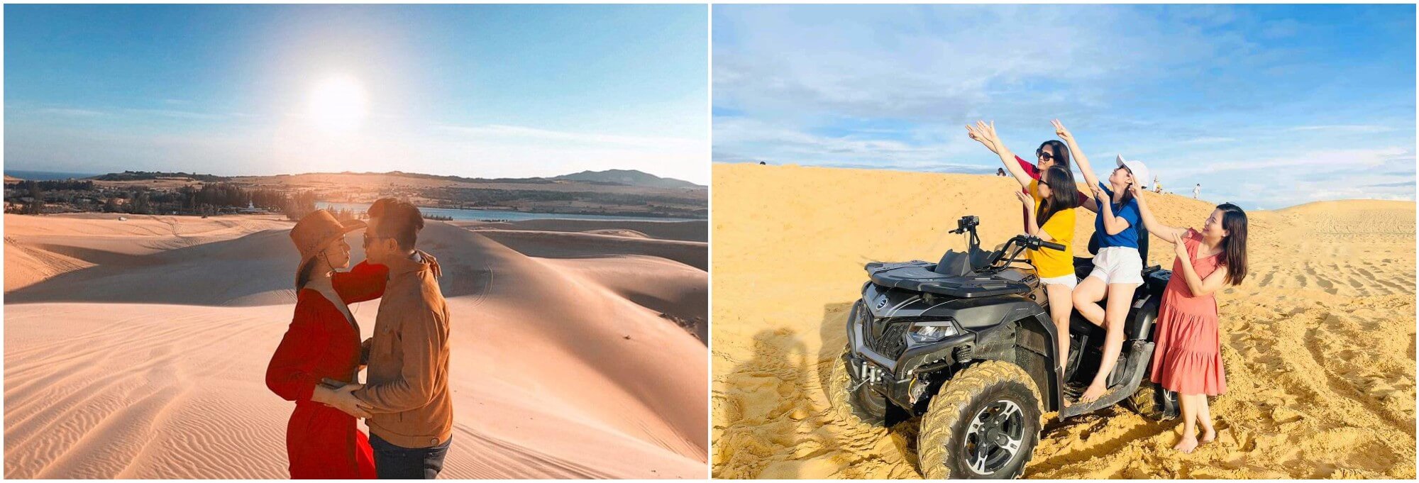 Ngoài trượt cát,lái xe địa hình cũng là một hoạt động đầy phấn khích. Những chiếc xe mạnh mẽ đưa du khách vượt qua các triền cát trập trùng,mang lại cảm giác phiêu lưu đầy kích thích. Dù tự lái hay ngồi trên xe dưới sự điều khiển của hướng dẫn viên,mỗi trải nghiệm đều để lại ấn tượng sâu sắc. Giá thuê xe khá hợp lý với các lựa chọn từ 300.000 đồng/15 phút đến 500.000 đồng/30 phút. Đây chắc chắn là một trải nghiệm mà bất kỳ ai yêu thích mạo hiểm đều không nên bỏ qua.