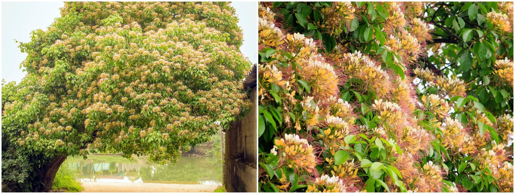 Đầu tháng ba,những nụ bún bắt đầu nhú ra trên từng nhành cây khẳng khiu sau mùa đông lạnh. Rồi đột ngột,như một phép màu của tạo hóa,cả tán cây bừng nở. Hoa bún có những cánh mỏng màu trắng xen vàng,tạo thành từng chùm bung nở như những đám mây nhỏ treo trên trời xanh. Ánh nắng ban mai len lỏi qua từng cánh hoa,rọi xuống mặt đất những bóng hoa lung linh,khiến người qua đường không thể không dừng lại mà ngước nhìn.