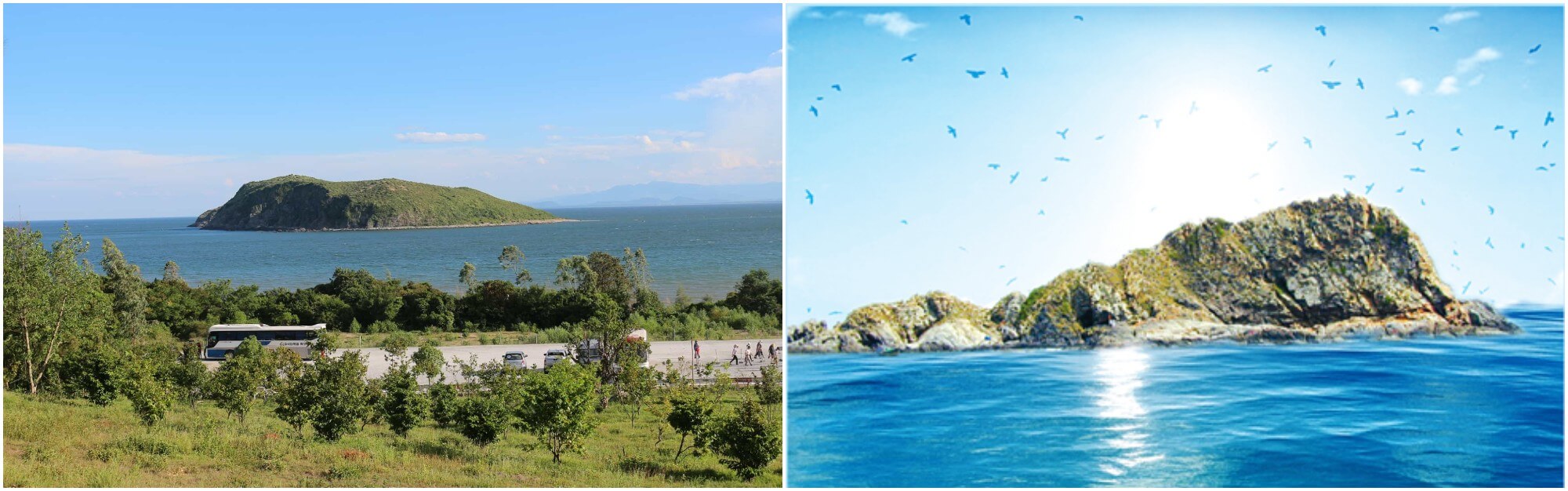 Nhìn từ trên cao,Vũng Chùa được ôm trọn bởi ba hòn đảo: hòn Nồm,hòn Gió và hòn La. Chính sự che chở ấy đã tạo nên một vùng biển kín gió,nơi những bãi cát trắng trải dài bên làn nước xanh màu ngọc bích. Ánh nắng vàng như mật rải khắp mặt biển,lấp lánh trong từng gợn sóng làm say lòng bất cứ ai từng đặt chân đến.