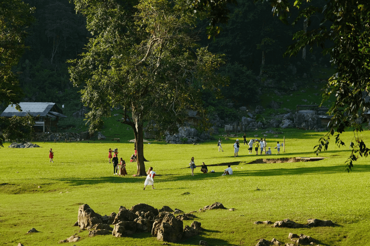 Đến Hang Táu,bạn sẽ được trải nghiệm đời sống giản đơn của người H'Mông,tham gia trồng trọt,chăn nuôi,đào măng và học cách thêu váy của người dân.