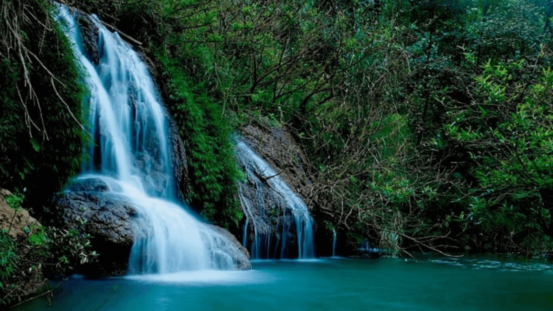 Xung quanh thác là những tán cây xanh rì rào,tạo nên một khung cảnh vô cùng thơ mộng,hữu tình. Tiếng chim hót líu lo hòa quyện cùng tiếng thác đổ tạo nên một bản giao hưởng tuyệt vời của thiên nhiên.