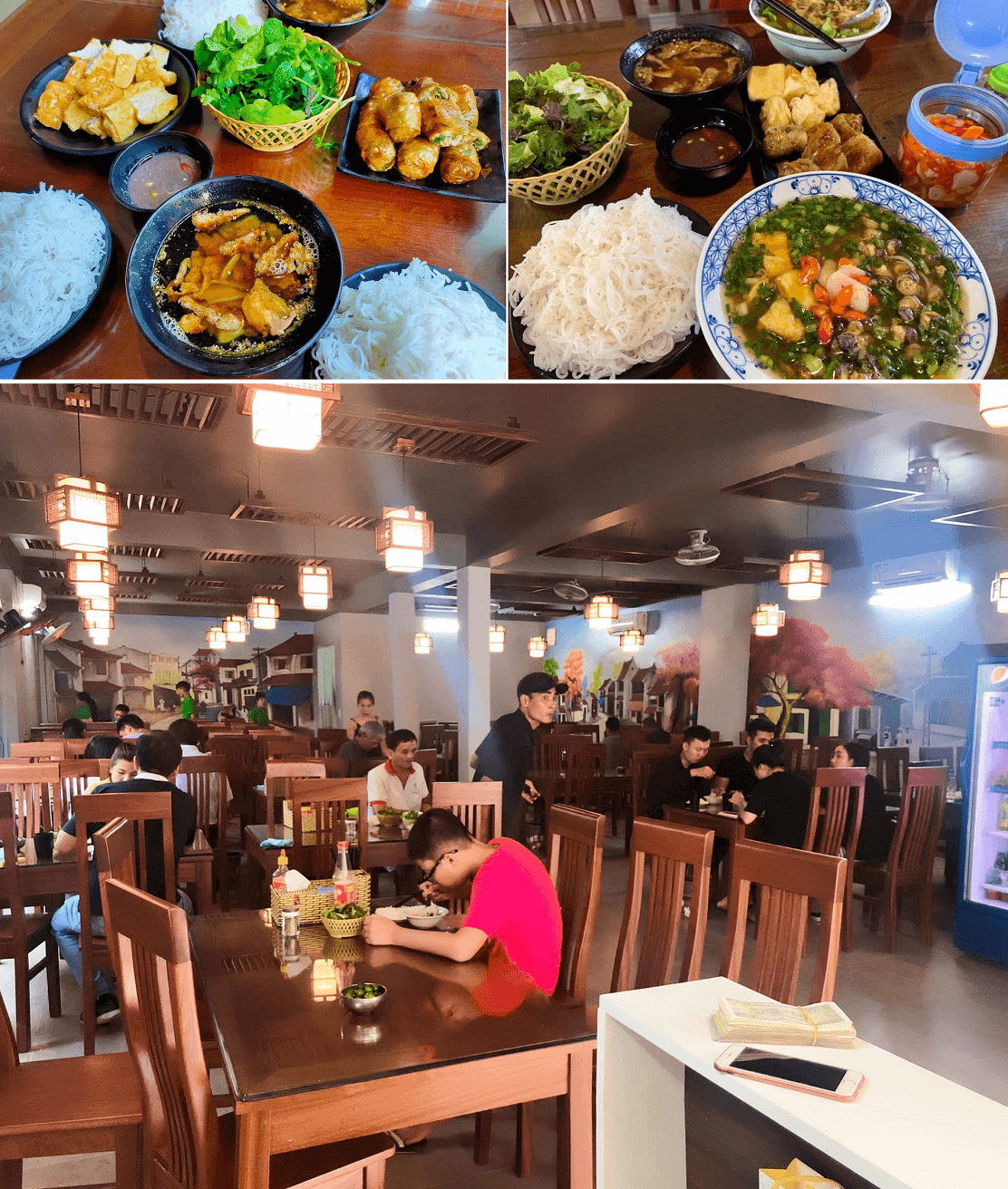 Quán còn ghi điểm với không gian quán rộng rãi,sạch sẽ,thoáng mát,gồm cả khu vực trong nhà và ngoài trời. Khi đến ăn có thể đỗ xe bên hông và phía trước nhà thờ,1 khoảng sân rất rộng luôn nhé. Quán mở từ 5:00 sáng đến 21:00 đêm nhưng lúc nào cũng có khách,đông nhất là vào giờ ăn sáng,ăn trưa và ăn tối. Có khi vào giờ cao điểm quán còn hết bàn,khách đến phải đợi nhân viên sắp xếp mới có bàn ngồi ăn.