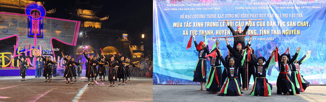 Múa Tắc xình của người Sán Chay ở huyện Phú Lương đã được lưu truyền và phục dựng để tham gia nhiều hoạt động văn hóa quan trọng ở trong nước như: Giao lưu văn hóa quốc tế Việt Nam - Thụy Điển tại Hà Nội; Ngày hội văn hóa các dân tộc Việt Nam lần thứ nhất; Khai mạc liên hoan dân ca toàn quốc năm 2008; Đặc biệt năm 2013 huyện Phú Lương chọn múa Tắc Xình tham gia Liên hoan Dân ca- Dân vũ Việt Nam đã xuất sắc đạt giải A toàn quốc.