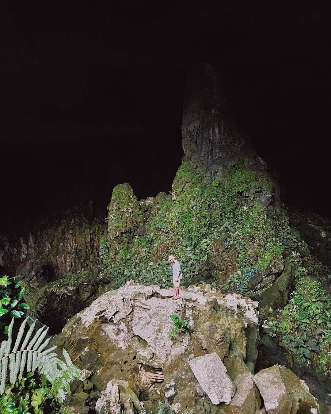 Moreover,the tall rock columns inside Doi Cave are home to climbing plants,adding a refreshing green hue and a strong natural presence. Stepping inside,one feels immersed in a mystical forest with the greenery of the leaves. Gentle breezes flow through the cave,bringing a cool sensation from the humid air and underground water currents inside the cave.