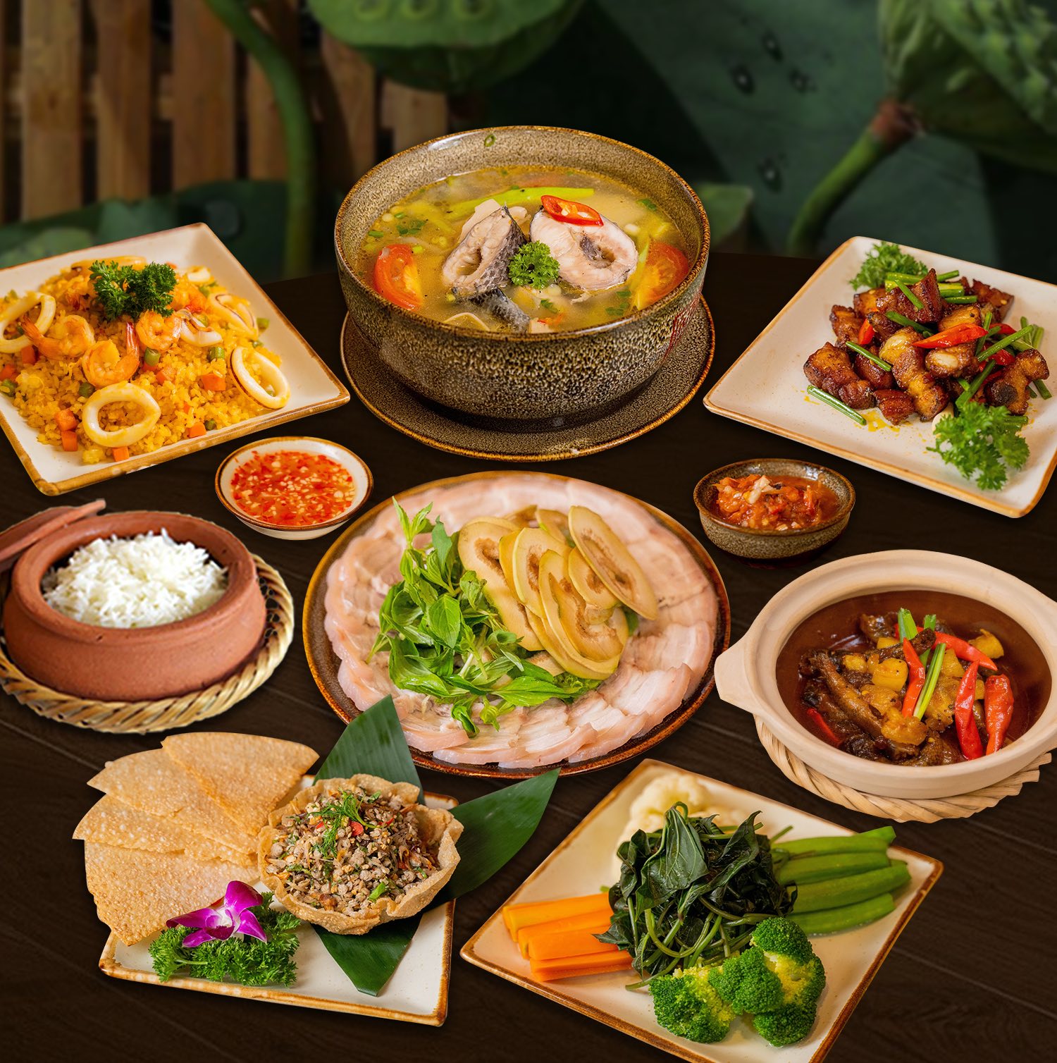 Món ăn làm nên tên tuổi của nhà hàng chắc chắn là Cơm Niêu, một món ăn tưởng chừng đơn giản nhưng lại rất kỳ công. Ngay từ khi ngồi vào bàn, mình đã ngửi thấy mùi hương gạo mới thơm lừng lan tỏa khắp không gian. Niêu cơm khi được bưng ra vẫn còn nóng hổi, khói bốc nghi ngút vô cùng hấp dẫn thị giác. Khi xới cơm, bạn sẽ thấy lớp cơm trắng bên trong rất dẻo và thơm, còn sát đáy niêu là lớp cháy vàng rụm cực kỳ hấp dẫn.