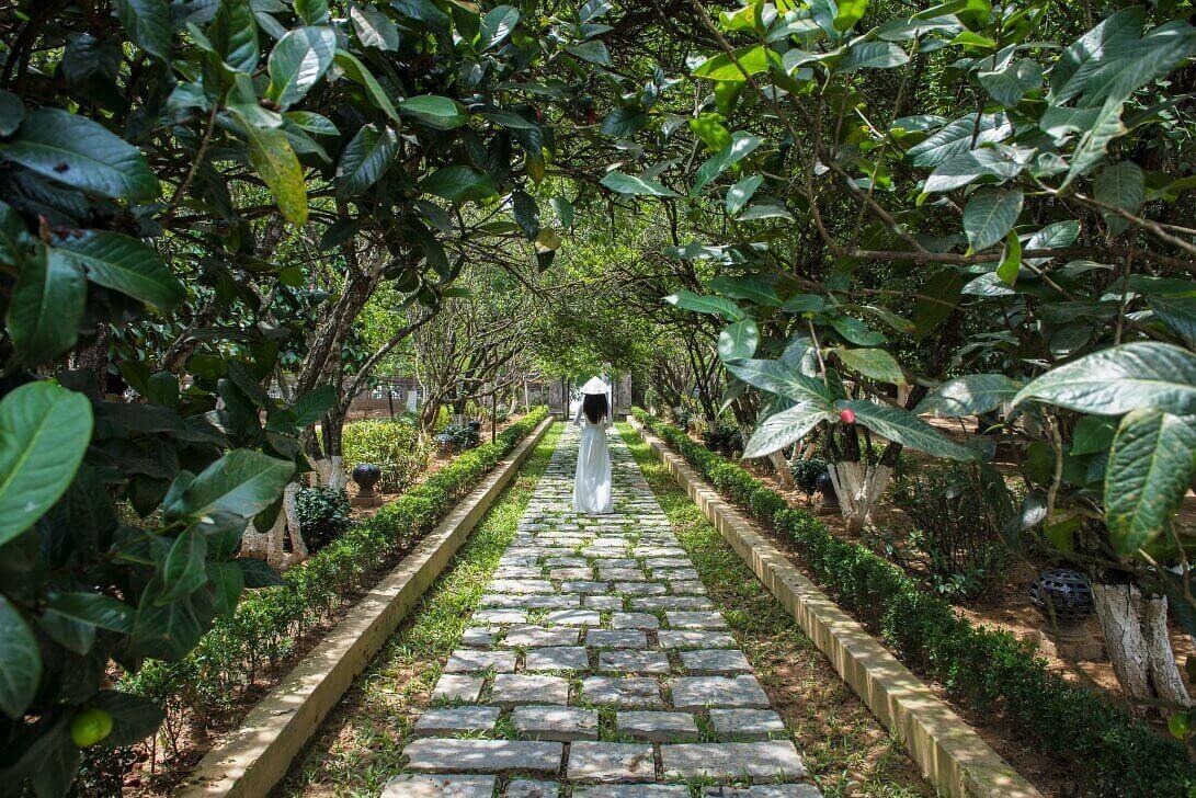 An Hien Garden bears the mark of traditional Hue garden house architecture with a harmonious combination of housing and nature. The house is made of rare ironwood,exquisitely carved with unique dragon,phoenix,and unicorn patterns. The large garden with all kinds of fruit trees,flowers and grass creates an atmosphere full of elegance and coolness.