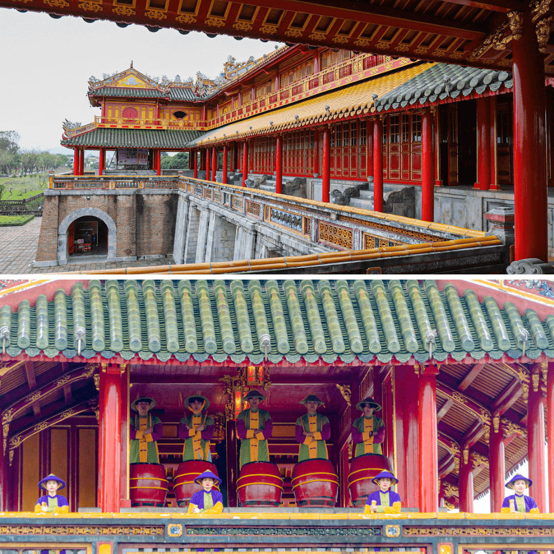 Đại Nội Huế là một phần trong Quần thể di tích Cố đô Huế, mang đậm dấu ấn văn hóa, lịch sử, kiến trúc của triều đại nhà Nguyễn, tổ chức UNESCO đã công nhận là di sản văn hóa thế giới vào năm 1993. Nằm ở bên bờ dòng sông Hương, Đại Nội Huế là một trong số các di tích thuộc cụm Quần thể di tích Cố đô Huế được công nhận là Di sản Văn hoá Thế giới và còn lưu giữ nhiều dấu ấn đặc sắc của nét phong kiến triều đình nhà Nguyễn hàng trăm năm trước. Đại Nội Huế là cụm di tích bao gồm Hoàng Thành (nơi vua thiết triều và làm việc) và Tử Cấm Thành (nơi sinh hoạt của vua và hoàng tộc). Là một công trình có quy mô đồ sộ nhất trong lịch sử Việt Nam, Di tích Đại Nội Huế có quá trình xây dựng kéo dài tới 30 năm với hàng vạn người thi công cùng hàng loạt các công việc như lấp sông, đào hào, đắp thành, dời mộ… cùng khối lượng đất đá khổng lồ lên đến hàng triệu mét khối. Đến thăm quan quần thể di tích Đại Nội Huế, bạn sẽ được chiêm ngưỡng hàng trăm công trình cung điện nguy nga, đền đài và miếu thờ bề thế. Với vẻ đẹp tráng lệ và kiến trúc cung điện đắc sắc, bạn chắc chắn sẽ cảm thấy thích thú trên hành trình thăm quan Đại Nội. Hoàng Thành Huế bao gồm nhiều khu vực như khu vực phòng vệ, khu vực cử hành đại lễ, khu vực miếu thờ,… được đặt giữa một không gian thiên nhiên đẹp hài hoà của những hồ nước, vườn hoa, cầu đá, hòn đảo và cây cối xanh tươi toả bóng mát. Hoàng thành có 4 cổng được đặt ở 4 mặt, trong đó cổng chính lớn nhất và có kiến trúc đẹp nhất là cổng Ngọ Môn. Cổng Ngọ Môn nhìn về phía Nam kinh thành và trông xa ra dòng sông Hương thơ mộng. Cổng Ngọ Môn có 5 cửa, trong đó cửa chính ở giữa từng là cổng dành cho vua đi, hai cổng bên dành cho quan văn, quan võ, và hai cổng bên quanh là dành cho binh lính cùng voi ngựa theo hầu. Được xây phía trên cổng là Lầu Ngũ Phụng có kết cấu bằng gỗ lim, chia làm 2 tầng và 9 bộ mái, mái giữa được lợp màu vàng, còn lại là 8 lợp mái xanh. Trước đây, Lầu Ngũ Phụng là nơi tổ chức một số các lễ lớn của triều đình nhà Nguyễn. Trải qua gần 2 thế kỷ và chứng kiến bao mốc sự kiện lịch sử quan trọng của dân tộc, Cổng Ngọ Môn vẫn tồn tại theo thời gian và đã trở thành một kiệt tác kiến trúc cổ xuất sắc! Điện Thái Hòa là một biểu trưng quyền lực của Hoàng triều nhà Nguyễn. Nằm trong khu vực Hoàng thành, Điện Thái Hoà cùng Sân Đại Triều Nghi từng là nơi diễn ra các buổi thiết triều quan trọng của triều đình. Trong nhiều cung điện trong Hoàng thành Huế, Cung Diên Thọ là hệ thống kiến trúc cung điện quy mô nhất ở Huế còn lại cho đến ngày nay. Nơi đây từng là nơi ở của các Hoàng Thái Hậu và các Thái Hoàng Thái Hậu. Cũng thuộc quần thể di tích cố đố Huế và nằm trong khu vực Hoành thành, Tử Cấm thành là nơi sinh hoạt của vua cũng như là hoàng triều nhà Nguyễn. Trong Tử Cấm Thành, có hơn 50 công trình kiến trúc với quy mô đa dạng khác nhau, tiêu biểu phải kể đến Điện Cần Chánh (nơi vua thiết triều và tổ chức yến tiệc), Điện Càn Thành (nơi vua ngủ nghỉ), Thái Bình Lâu (nơi vua thư giãn, đọc sách), Tả Vu & Hữu Vu,… Đến thăm quan Đại Nội Huế, bạn còn có thể tham gia đêm Hoàng cung được tổ chức định kỳ vào thứ Bảy hàng tuần. Trong đêm Hoàng cung ngập tràn ánh sáng, các nghi thức của cung đình xưa sẽ được tái hiện lại đầy chân thực và các hoạt động văn hóa nghệ thuật độc đáo cũng được diễn ra. Đây sẽ là một điểm nhấn vô cùng thú vị cho hành trình khám phá Đại Nội Huế của bạn! Đặc biệt hơn nữa, mới đây Đại Nội Huế đã chính thức mở cửa đón khách thăm quan vào ban đêm từ 19 – 22h và đây chính là dịp để bạn thăm quan tìm hiểu Đại Nội cũng như “sở hữu” những bức ảnh tuyệt đẹp bên những công trình rực rỡ, lung linh ánh đèn.