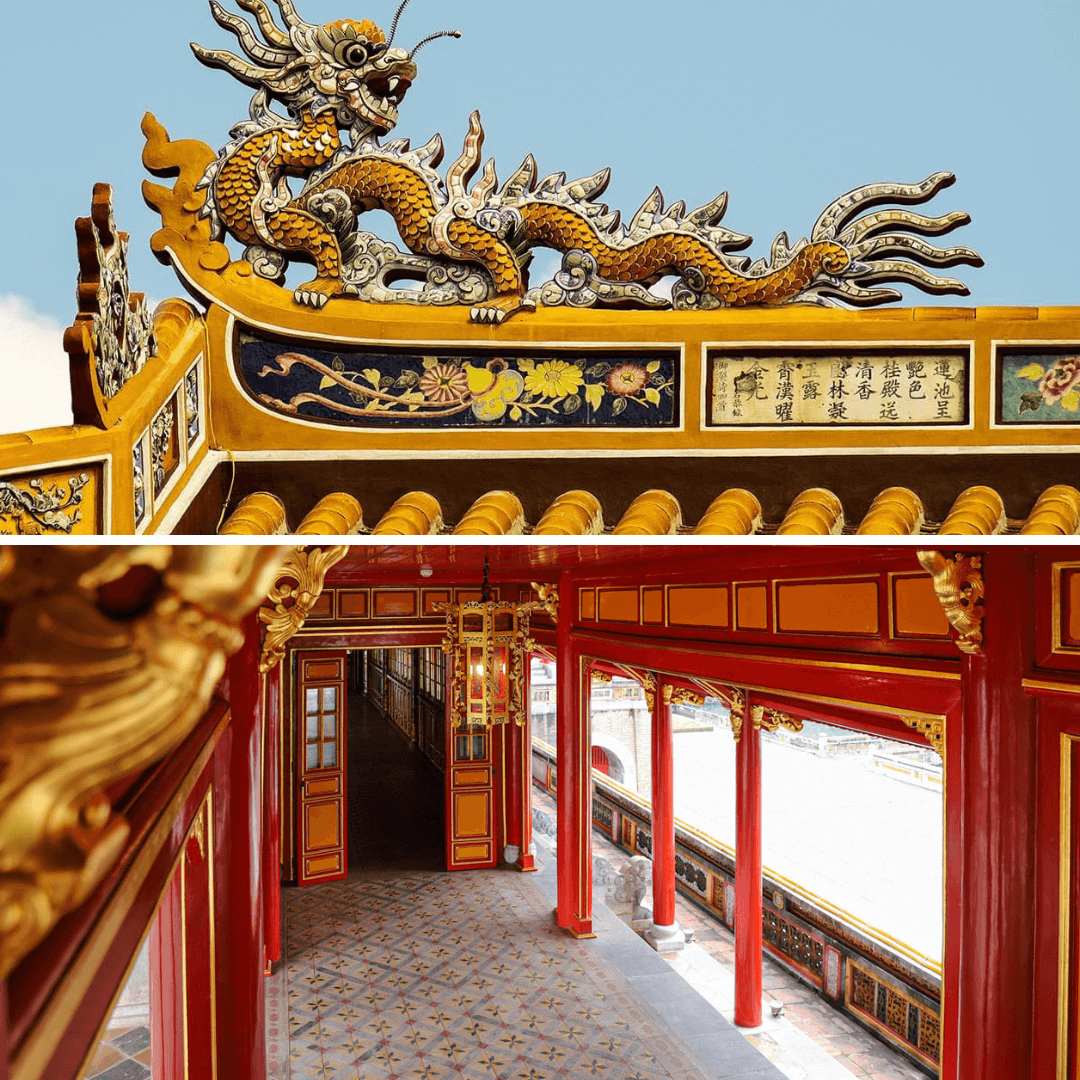 Không gian tại Lầu Ngũ Phụng mang đến cảm giác hài hòa,thoáng mát nhờ thiết kế mở,đón ánh sáng tự nhiên và luồng gió từ sông Hương. Đứng tại đây,bạn có thể phóng tầm mắt ra xa,chiêm ngưỡng toàn cảnh khu Hoàng thành và dòng sông Hương lững lờ chảy. Cảnh sắc yên bình,kết hợp với kiến trúc cổ kính,tạo nên một không gian vừa trang nghiêm vừa thơ mộng.