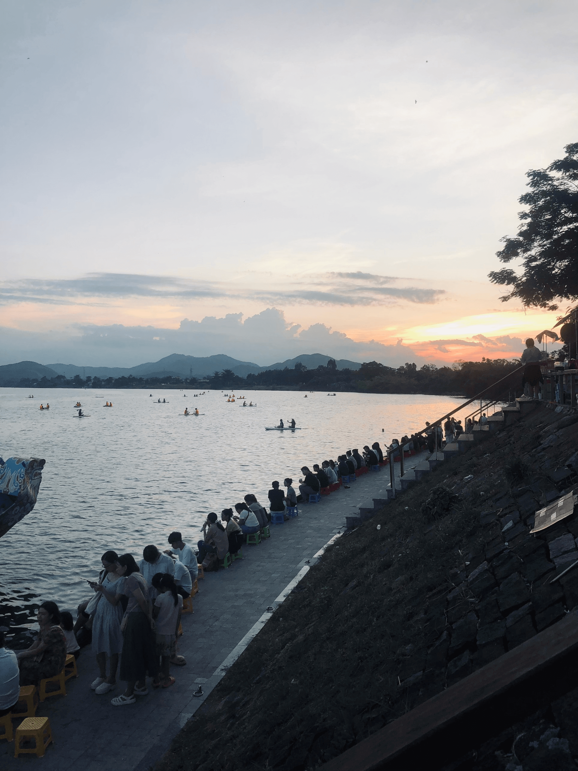 Khi đến chùa Thiên Mụ,các bạn nên đi bằng thuyền rồng đến rồi thăm quan,hoặc có thể đi xe đến tham quan rồi đi thuyền về bến. Nếu bạn đến Chùa Thiên Mụ bằng xe riêng thì sẽ có nơi gửi đậu xe cho khách ở bên hông Chùa,sau đó các bạn sẽ đi bộ lên Chùa để tham quan,vãn cảnh ngôi Chùa. Sau khi tham quan Chùa xong thì chiều mát các bạn có thể ngồi nghỉ ngơi tại các hàng quán trước cổng Chùa Thiên Mụ,bên dưới sẽ có một bờ kè có rất nhiều hàng quán mở ra để du khách ngồi bên bờ sông Hương thưởng thức tàu hủ nóng,vừa ngắm hoàng hôn trên sông Hương,vừa xem các cùng hoạt động chèo Sup sôi nổi tại đó. Bên cạnh đó,có thể ngắm cảm giác rất bình yên và thư giãn. Mình thấy chiều,tối mọi người cũng đông không khác gì ban ngày. Vừa có khách du lịch vừa có người dân chạy bộ tập thể dục xung quanh đó.