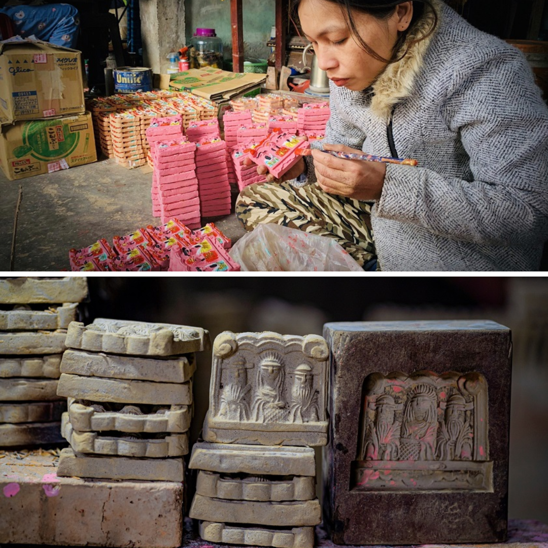 Sau khi đất đã "chín" và đạt độ dẻo,người thợ sẽ tiến hành nhào nặn thật kỹ rồi đưa vào khuôn đúc. Khuôn đúc thường là khuôn thạch cao hoặc khuôn gỗ truyền thống đã được gìn giữ qua nhiều năm. Tượng được lấy ra khỏi khuôn gọi là "tượng mộc",còn khá ẩm và cần được phơi khô tự nhiên dưới ánh nắng. Cuối cùng,tượng sẽ được đưa vào lò nung với kỹ thuật canh lửa chính xác để đảm bảo độ cứng cáp và màu sắc.