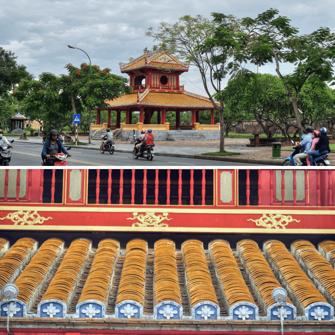 Đại Nội Huế là một phần trong Quần thể di tích Cố đô Huế, mang đậm dấu ấn văn hóa, lịch sử, kiến trúc của triều đại nhà Nguyễn, tổ chức UNESCO đã công nhận là di sản văn hóa thế giới vào năm 1993. Nằm ở bên bờ dòng sông Hương, Đại Nội Huế là một trong số các di tích thuộc cụm Quần thể di tích Cố đô Huế được công nhận là Di sản Văn hoá Thế giới và còn lưu giữ nhiều dấu ấn đặc sắc của nét phong kiến triều đình nhà Nguyễn hàng trăm năm trước. Đại Nội Huế là cụm di tích bao gồm Hoàng Thành (nơi vua thiết triều và làm việc) và Tử Cấm Thành (nơi sinh hoạt của vua và hoàng tộc). Là một công trình có quy mô đồ sộ nhất trong lịch sử Việt Nam, Di tích Đại Nội Huế có quá trình xây dựng kéo dài tới 30 năm với hàng vạn người thi công cùng hàng loạt các công việc như lấp sông, đào hào, đắp thành, dời mộ… cùng khối lượng đất đá khổng lồ lên đến hàng triệu mét khối. Đến thăm quan quần thể di tích Đại Nội Huế, bạn sẽ được chiêm ngưỡng hàng trăm công trình cung điện nguy nga, đền đài và miếu thờ bề thế. Với vẻ đẹp tráng lệ và kiến trúc cung điện đắc sắc, bạn chắc chắn sẽ cảm thấy thích thú trên hành trình thăm quan Đại Nội. Hoàng Thành Huế bao gồm nhiều khu vực như khu vực phòng vệ, khu vực cử hành đại lễ, khu vực miếu thờ,… được đặt giữa một không gian thiên nhiên đẹp hài hoà của những hồ nước, vườn hoa, cầu đá, hòn đảo và cây cối xanh tươi toả bóng mát. Hoàng thành có 4 cổng được đặt ở 4 mặt, trong đó cổng chính lớn nhất và có kiến trúc đẹp nhất là cổng Ngọ Môn. Cổng Ngọ Môn nhìn về phía Nam kinh thành và trông xa ra dòng sông Hương thơ mộng. Cổng Ngọ Môn có 5 cửa, trong đó cửa chính ở giữa từng là cổng dành cho vua đi, hai cổng bên dành cho quan văn, quan võ, và hai cổng bên quanh là dành cho binh lính cùng voi ngựa theo hầu. Được xây phía trên cổng là Lầu Ngũ Phụng có kết cấu bằng gỗ lim, chia làm 2 tầng và 9 bộ mái, mái giữa được lợp màu vàng, còn lại là 8 lợp mái xanh. Trước đây, Lầu Ngũ Phụng là nơi tổ chức một số các lễ lớn của triều đình nhà Nguyễn. Trải qua gần 2 thế kỷ và chứng kiến bao mốc sự kiện lịch sử quan trọng của dân tộc, Cổng Ngọ Môn vẫn tồn tại theo thời gian và đã trở thành một kiệt tác kiến trúc cổ xuất sắc! Điện Thái Hòa là một biểu trưng quyền lực của Hoàng triều nhà Nguyễn. Nằm trong khu vực Hoàng thành, Điện Thái Hoà cùng Sân Đại Triều Nghi từng là nơi diễn ra các buổi thiết triều quan trọng của triều đình. Trong nhiều cung điện trong Hoàng thành Huế, Cung Diên Thọ là hệ thống kiến trúc cung điện quy mô nhất ở Huế còn lại cho đến ngày nay. Nơi đây từng là nơi ở của các Hoàng Thái Hậu và các Thái Hoàng Thái Hậu. Cũng thuộc quần thể di tích cố đố Huế và nằm trong khu vực Hoành thành, Tử Cấm thành là nơi sinh hoạt của vua cũng như là hoàng triều nhà Nguyễn. Trong Tử Cấm Thành, có hơn 50 công trình kiến trúc với quy mô đa dạng khác nhau, tiêu biểu phải kể đến Điện Cần Chánh (nơi vua thiết triều và tổ chức yến tiệc), Điện Càn Thành (nơi vua ngủ nghỉ), Thái Bình Lâu (nơi vua thư giãn, đọc sách), Tả Vu & Hữu Vu,… Đến thăm quan Đại Nội Huế, bạn còn có thể tham gia đêm Hoàng cung được tổ chức định kỳ vào thứ Bảy hàng tuần. Trong đêm Hoàng cung ngập tràn ánh sáng, các nghi thức của cung đình xưa sẽ được tái hiện lại đầy chân thực và các hoạt động văn hóa nghệ thuật độc đáo cũng được diễn ra. Đây sẽ là một điểm nhấn vô cùng thú vị cho hành trình khám phá Đại Nội Huế của bạn! Đặc biệt hơn nữa, mới đây Đại Nội Huế đã chính thức mở cửa đón khách thăm quan vào ban đêm từ 19 – 22h và đây chính là dịp để bạn thăm quan tìm hiểu Đại Nội cũng như “sở hữu” những bức ảnh tuyệt đẹp bên những công trình rực rỡ, lung linh ánh đèn.