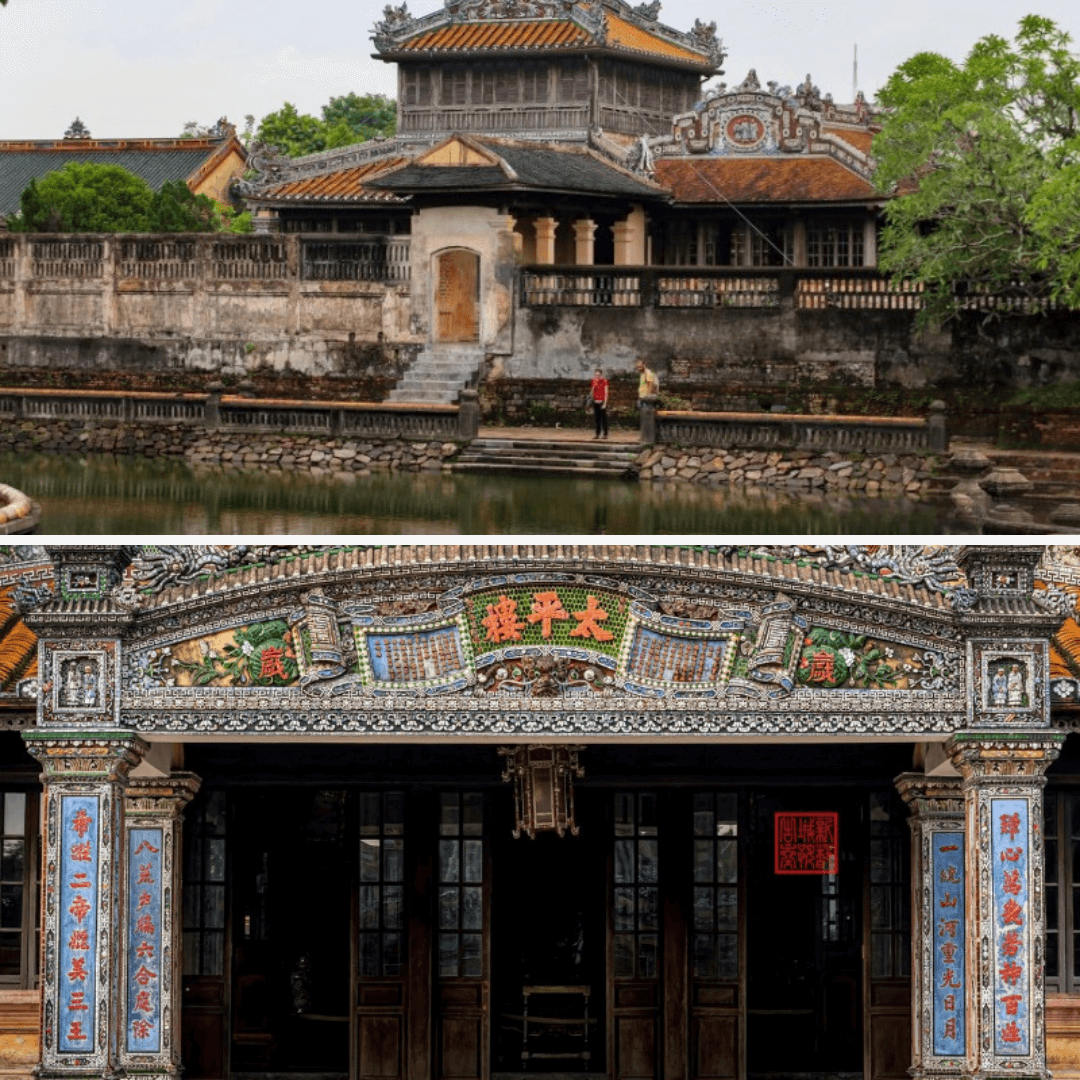 Thái Bình Lâu không chỉ nổi bật với thiên nhiên mà còn với những công trình kiến trúc độc đáo,phản ánh nét đẹp truyền thống của Huế. Kiến trúc tại đây mang đậm dấu ấn lịch sử với các chi tiết tinh xảo và sự kết hợp hài hòa giữa các yếu tố cổ điển và hiện đại.