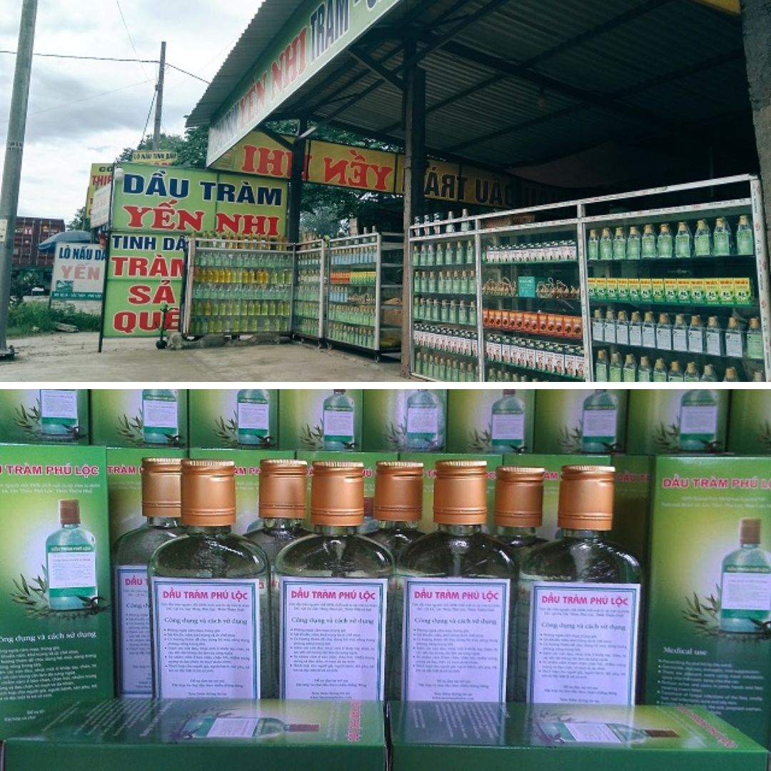 Nếu bạn muốn mua dầu tràm Phú Lộc chính gốc, mình gợi ý bạn ghé các lò nấu ven quốc lộ 1A đoạn xã Lộc Thủy, nơi nhiều hộ dân vẫn giữ nghề truyền thống, trong đó có lò Thắng Lợi gần chân đèo Phước Tượng – một địa chỉ được người dân địa phương tin dùng. Ngoài ra, ở Huế cũng có thể tìm mua tại các cửa hàng uy tín như Dầu tràm Bé Thơ, MB Shop – Dầu tràm Phú Lộc, hay đặt hàng qua các trang Facebook chính thức của làng nghề. Những nơi này đều cung cấp dầu nguyên chất, hương dịu nhẹ, được chưng cất thủ công, thích hợp để làm quà sau chuyến đi. Khi đến mua trực tiếp, bạn sẽ còn có cơ hội xem tận mắt quy trình nấu và cảm nhận hương tràm lan khắp không gian làng nghề.