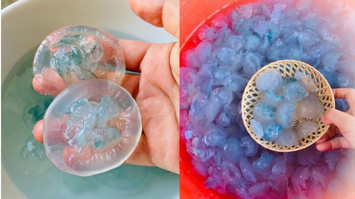Con nuốc có kích thước chỉ bằng trái chanh,màu xanh pha chút hồng nhạt,với những xúc tua nhỏ giống mực. Vào mùa hè,nếu đến Huế,bạn sẽ thấy cảnh nuốc nổi lên mặt nước thành từng mảng lớn. Người dân thường vớt nuốc,ngâm qua nước rồi mang ra chợ bán. Thịt nuốc được chia thành phần "tai" và "chân",có vị giòn mát,không tanh và không gây ngứa. Đây là loại hải sản giúp giải nhiệt cơ thể rất tốt trong những ngày nắng nóng.