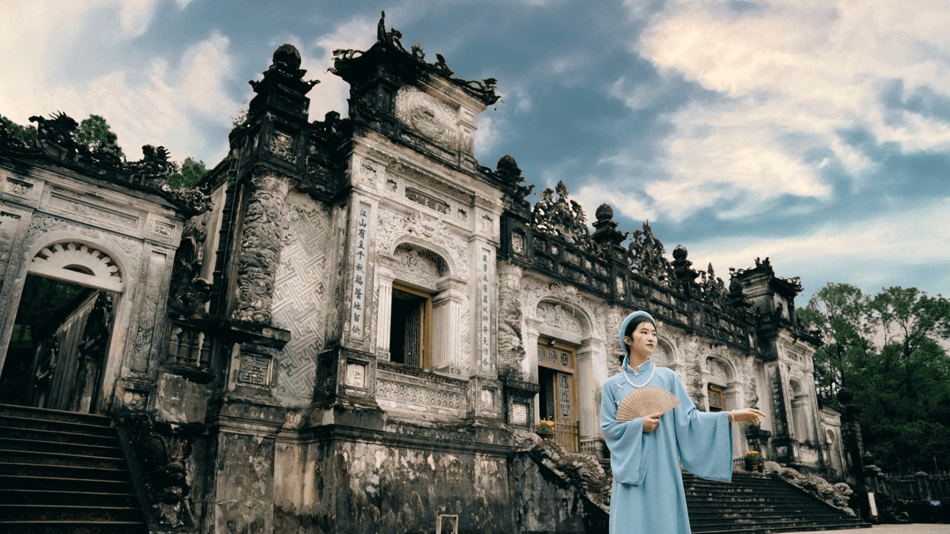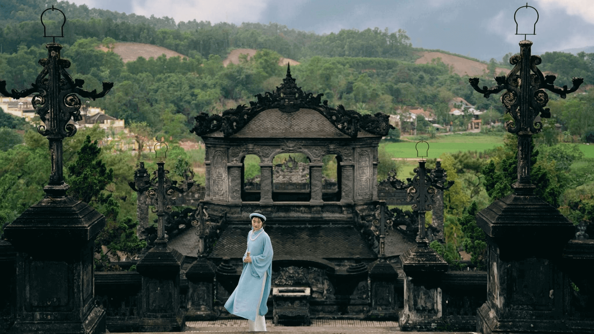 When coming to the dreamy land of Hue, don't miss Khai Dinh Hue Tomb - a prominent check-in spot with sophisticatedly designed architecture and artistic beauty. Hãy nghe Trần Thuỳ Thanh Xuân (Đồng Nai) một travel blogger nổi tiếng bật mí .