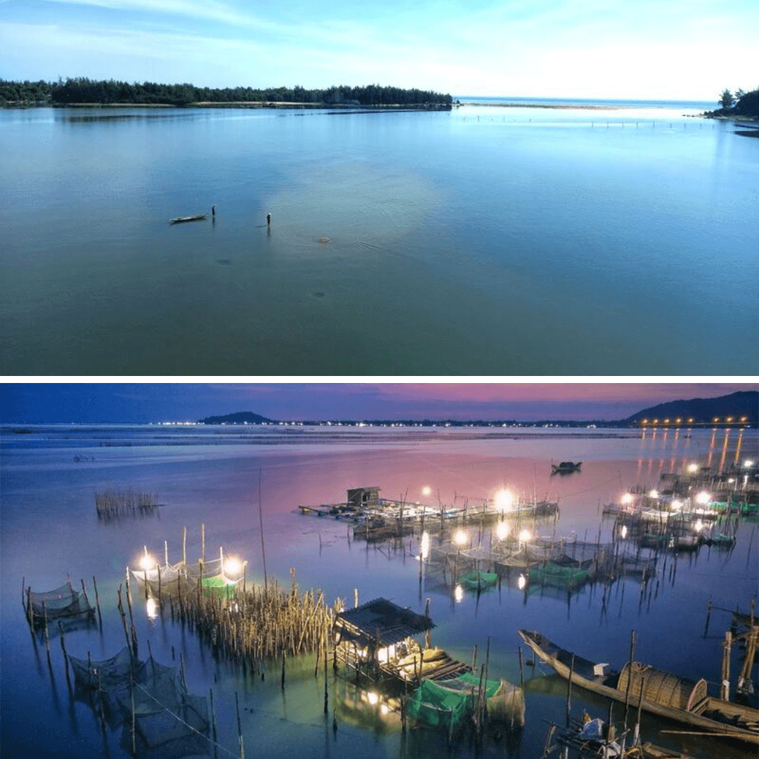 Hệ thống đầm phá Tam Giang - Cầu Hai là một trong những điểm đến độc đáo của miền Trung,nổi bật với diện tích rộng lớn lên đến 22.000 ha. Bao gồm ba đầm chính: phá Tam Giang,đầm Thủy Tú và đầm Cầu Hai,hệ thống này không chỉ quan trọng về mặt sinh thái mà còn đóng góp lớn vào nguồn cung thủy sản cho khu vực. Đây là nơi sinh sống của nhiều loài động thực vật,giúp duy trì sự cân bằng sinh thái. Nước trong các đầm thường có độ mặn nhẹ,tạo điều kiện lý tưởng cho các loài thủy sản phát triển mạnh mẽ.