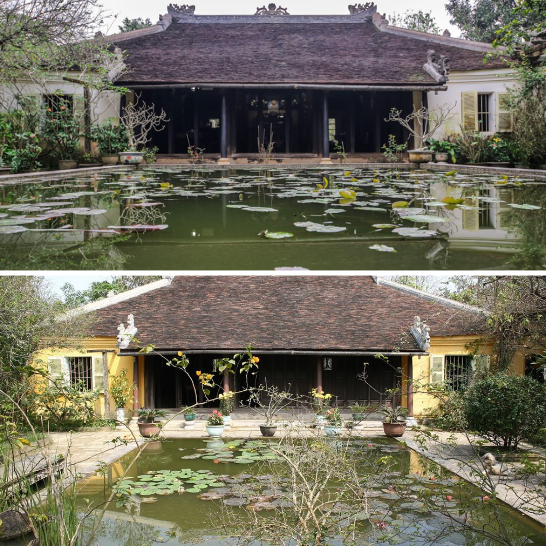 Khi đặt chân đến,mình cảm giác như đang bước vào một thế giới chậm rãi và đầy thi vị. Những mái ngói rêu phong,hàng cau thẳng tắp và mùi hương hoa trong gió làm nơi này trở nên gần gũi. Bên trong khuôn viên,gia chủ vẫn giữ gìn từng chi tiết nhỏ từ bàn ghế gỗ,bình phong cho đến khu vườn nhiều loại cây. Tất cả tạo nên cảm giác vừa thân quen vừa linh thiêng.