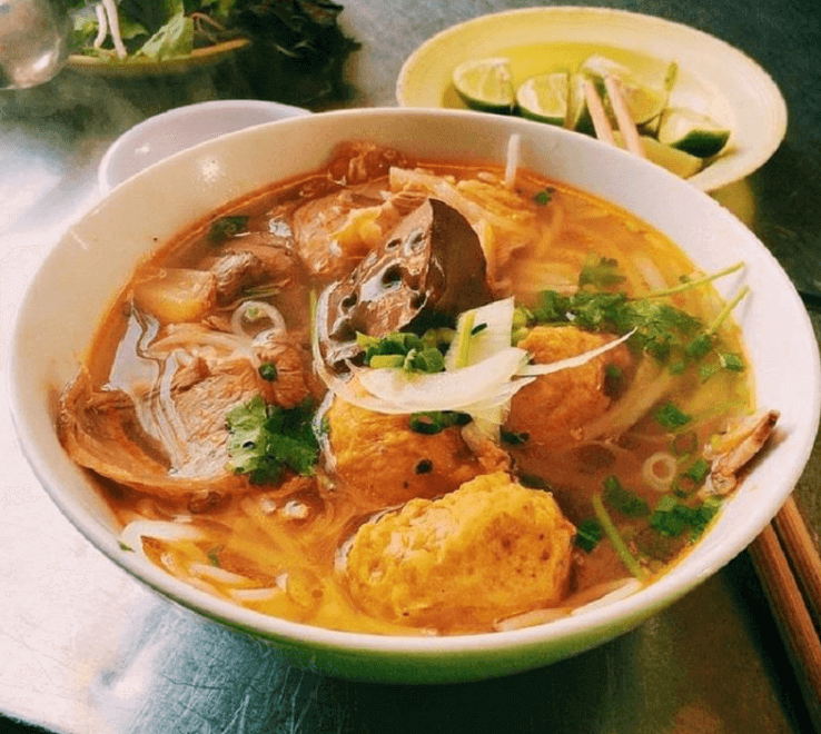 Một cái tên vô cùng quen thuộc mà chắc hẳn ai cũng đã từng nghe và nói đến - bún bò Huế. Bún bò Huế từ lâu đã trở thành một món ăn không thể thiếu trong văn hóa ẩm thực của người dân xứ Huế. Ở đây,dân bản địa chỉ gọi đơn giản là "bún bò",họ có thể thưởng thức bún bò tất cả các buổi trong ngày mà không hề có cảm giác chán bởi nó là một món ăn in sâu vào tâm thức của mỗi người con đất cố đô. Nước dùng bún bò ở Huế sẽ khác với những nơi khác. Để cho ra thành quả một tô bún bò chuẩn vị Huế,người nấu sẽ ninh xương,thơm (dứa),sả cùng một gia vị không thể thiếu là mắm ruốc. Một điều đặc biệt khác,không giống với bún bò Đà Nẵng dùng bún gạo để ăn cùng đồ chua,bún bò Huế sẽ được ăn với bún sợi nhỏ cùng rau sống. Quán bún bò mà chỉ có dân địa phương mới biết,du khách có thể thử: