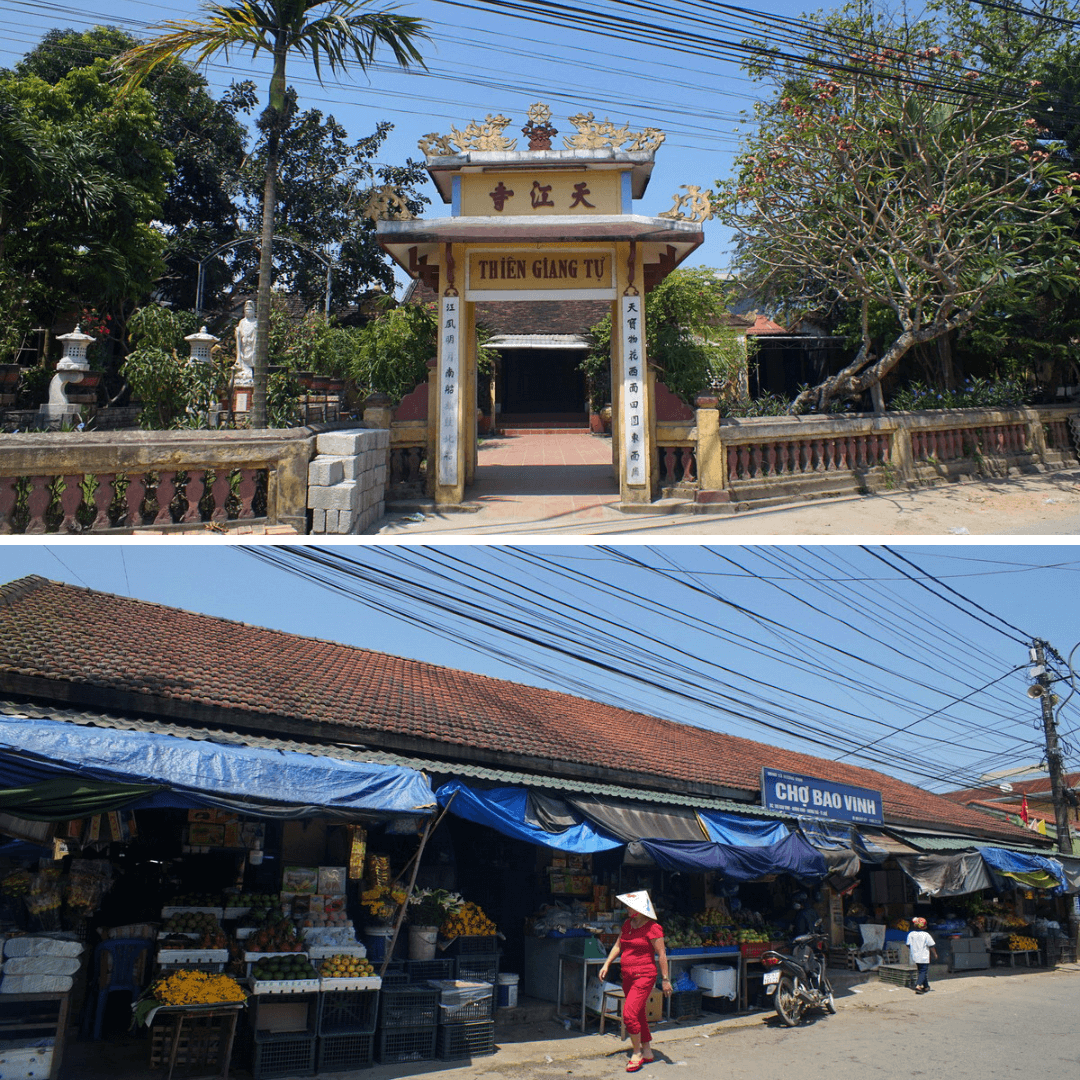 Chùa Thiên Giang Tự là một trong những địa điểm tâm linh quan trọng của phố cổ Bao Vinh. Với kiến trúc thanh thoát,chùa nằm bên bờ sông Hương,mang đến một không gian yên tĩnh và thanh bình. Đây là nơi du khách có thể tìm hiểu về Phật giáo,tham quan các tác phẩm điêu khắc tinh xảo và thư giãn tâm hồn giữa thiên nhiên.