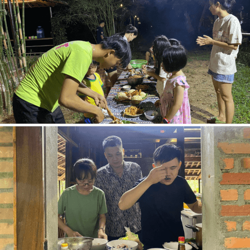 Nếu đặt trước,bạn có thể tham gia tiệc BBQ hoặc ăn tối ngoài trời với đèn lồng treo lấp lánh. Những bữa ăn như vậy giúp mình thấy như đang dùng bữa tại một gia đình nông thôn. Không khí thân mật,thức ăn ngon khiến bữa ăn trở thành một phần đáng nhớ trong chuyến đi. Chủ nhà nấu ăn rất khéo và luôn hỏi han từng người xem có hợp khẩu vị không.