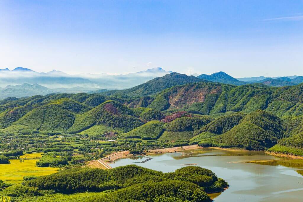 Không chỉ có biển cả,Huế còn có núi Ngự Bình,một phần của dãy núi Trường Sơn với đỉnh núi cao gần 1.500m. Việc leo núi tại đây không chỉ mang lại những trải nghiệm thú vị mà còn cho khả năng ngắm nhìn toàn cảnh vùng đất Huế từ độ cao. Cảnh quan thiên nhiên hùng vĩ và hoang sơ của núi rừng hòa quyện với không gian yên tĩnh,chỉ nghe tiếng chim hót vang lên trong làn gió mát mẻ.