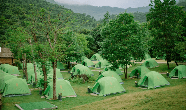 Khu du lịch này nằm trong quần thể vườn quốc gia Bạch Mã. Đây là sự kết hợp hoàn hảo giữa khung cảnh rừng núi và sông nước. Nổi bật với những khu lều trại với màu sắc trang nhã,nằm trên mặt cỏ xanh mướt. Du khách sẽ dễ dàng liên tưởng đến ngôi làng của những chú lùn trong bộ phim nổi tiếng khi chứng kiến cảnh vật nơi đây. Vậy nên du khách sẽ có rất nhiều background để thoải mái check-in.