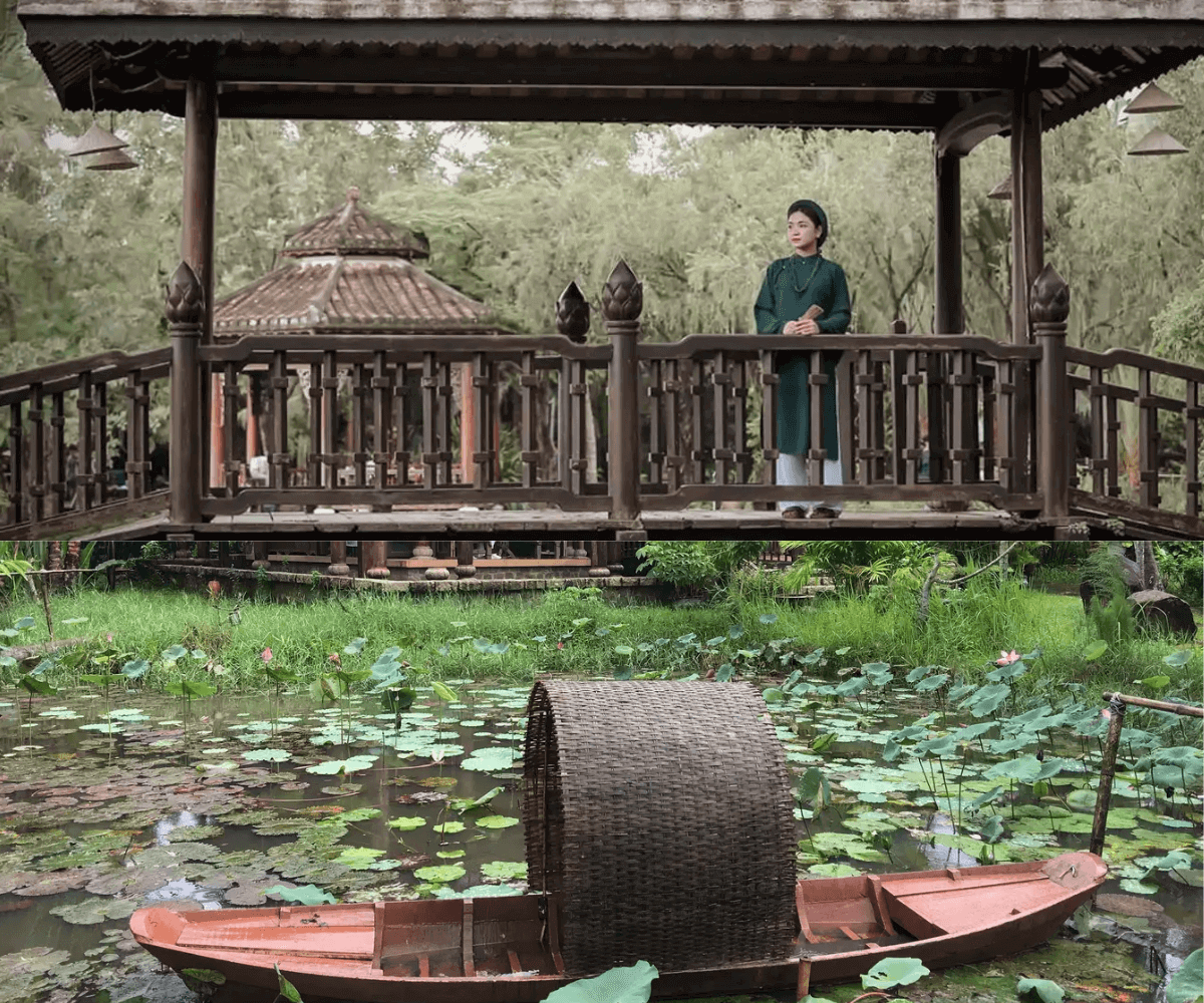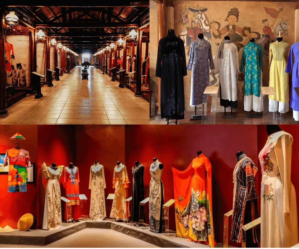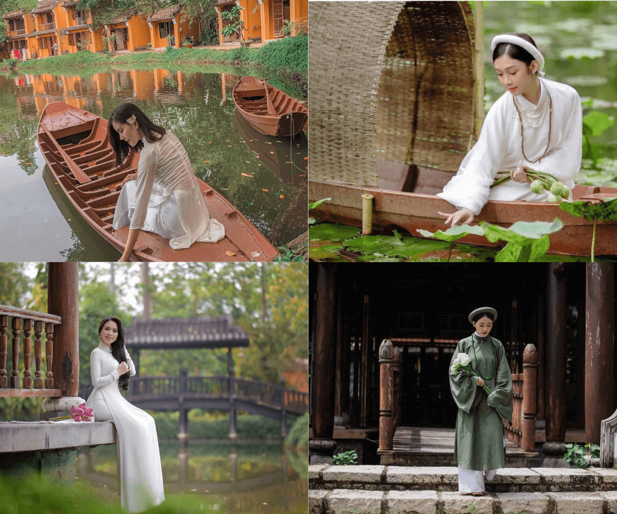 Bảo tàng Áo dài không chỉ trưng bày những bộ áo dài mang dấu ấn lịch sử,mà còn mở ra cơ hội trải nghiệm văn hóa Việt Nam một cách sống động. Đến đây,bạn có thể thuê áo dài để chụp ảnh tại các điểm check-in độc đáo như bến thuyền,cầu gỗ,nhà cổ hay những không gian tái hiện Ngũ Hành Miếu và Vọng Nguyệt Trà. Với đa dạng mẫu áo dài dành cho cả nam và nữ,phù hợp với mọi lứa tuổi,bảo tàng là nơi lý tưởng để bạn lưu giữ những khoảnh khắc đẹp và hòa mình vào không gian văn hóa đậm chất truyền thống.