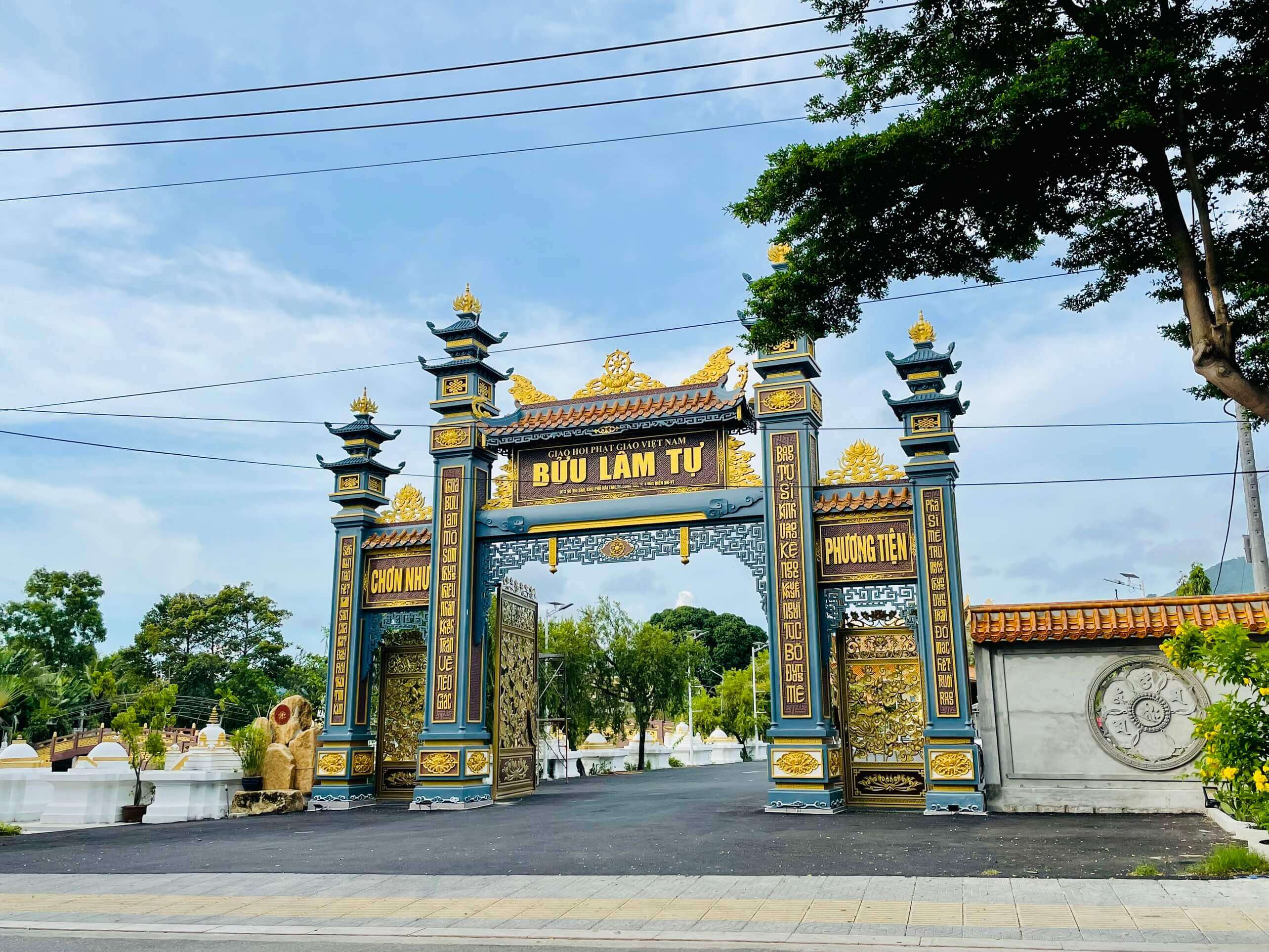 Cổng chùa Bửu Lâm được thiết kế tinh xảo,với hoạt tiết hoa sen vàng mang nét truyền thống,mà còn mang lại sự uy nghi cho ngôi chùa.