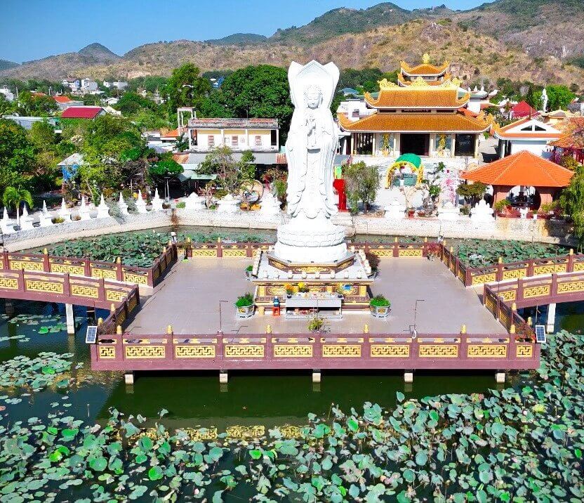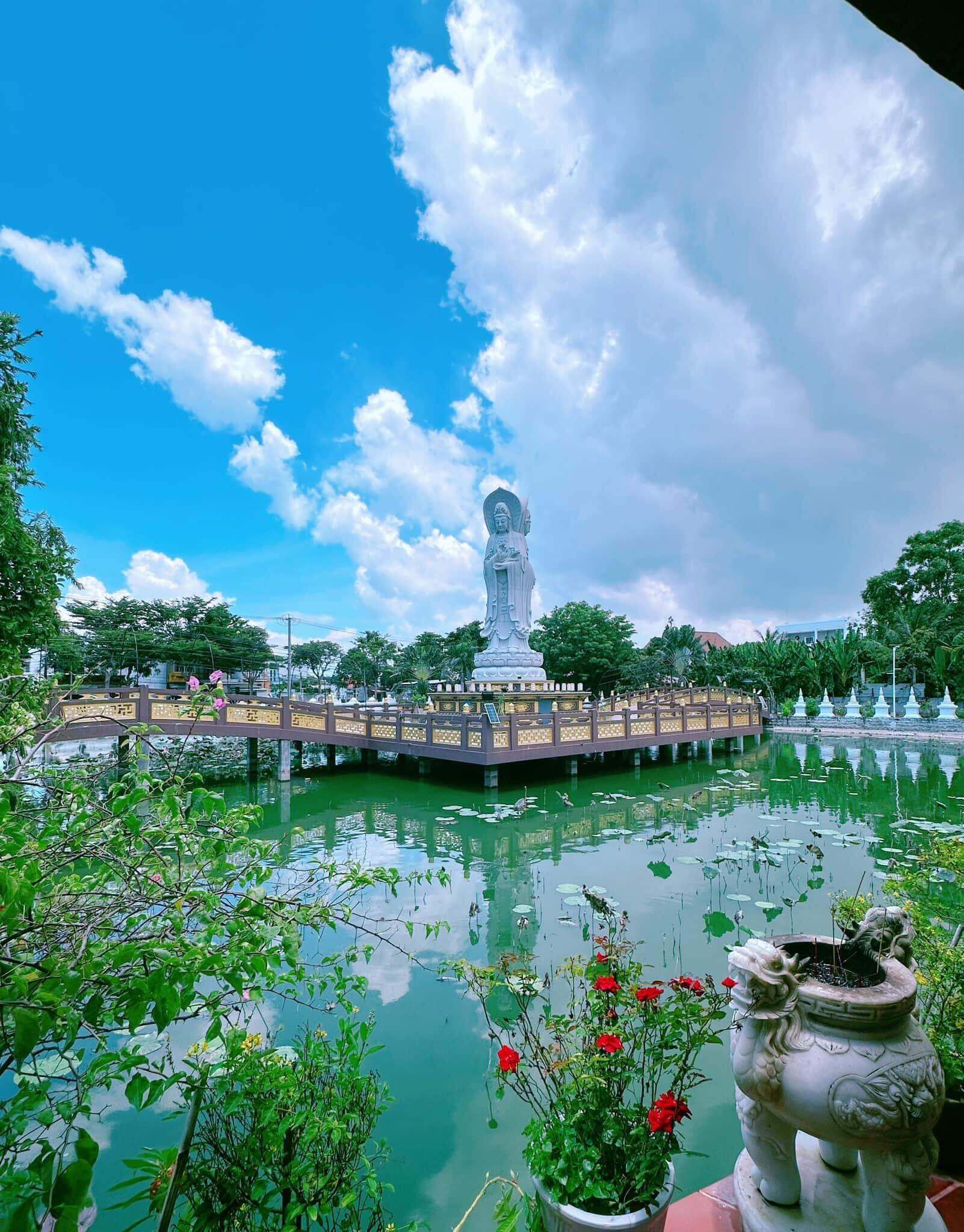 Điểm đặt biệt của Chùa là Tượng Phật Bà Quan Âm Tam Diện đứng giữa hồ sen. Tượng Phật mang ý nghĩa về sự từ bi,cứu khổ cứu nạn của Đức Phật. Vào mùa sen nở,những đóa sen hồng phấn càng làm tăng thêm vẻ đẹp cho khung cảnh linh thiêng và yên bình này.