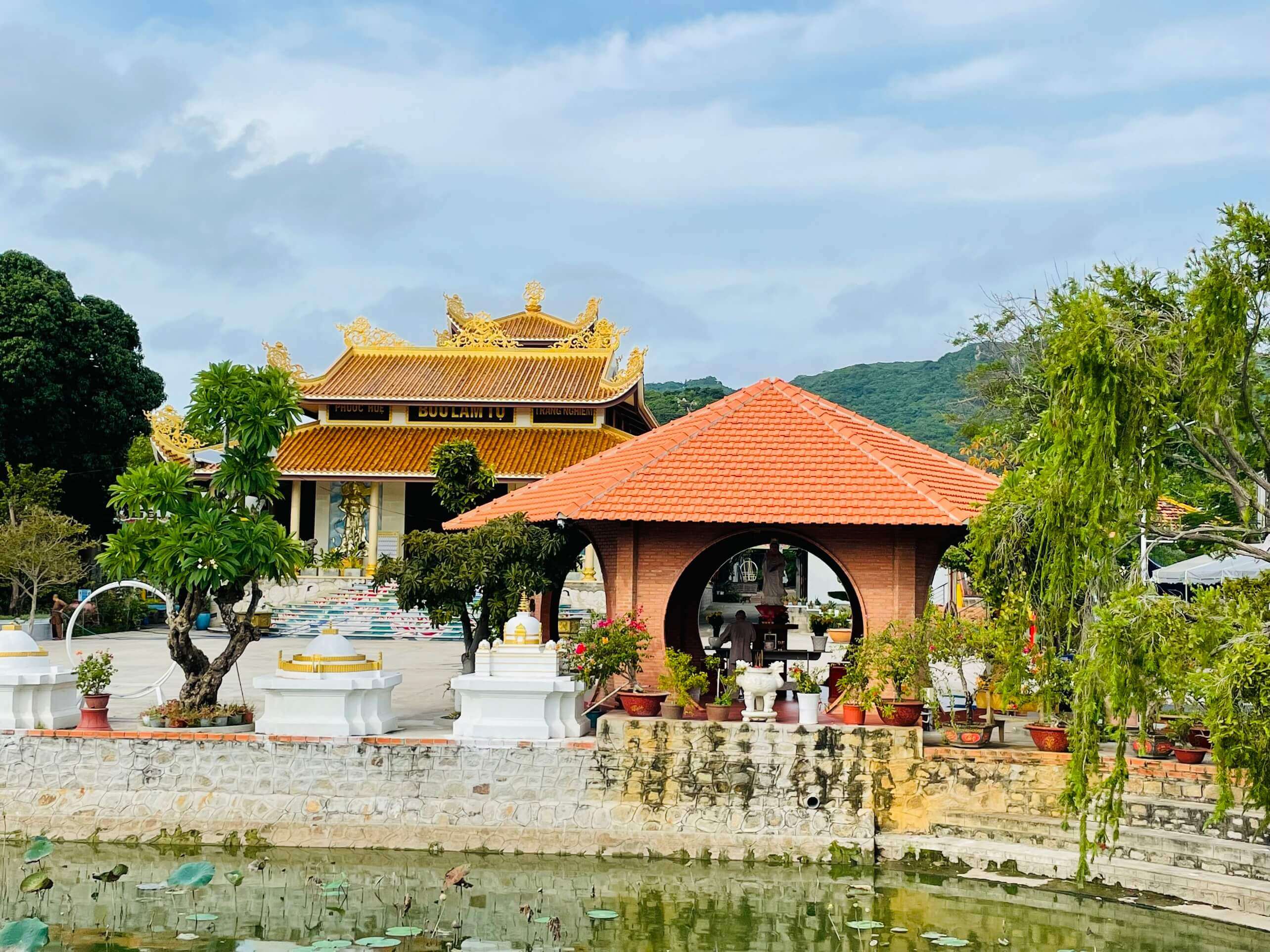 Chùa nằm giữa những hàng liễu xanh mát,thơm mùi gió biển,hòa thêm không gian yên bình,thanh tịnh giúp bạn tìm được bình yên trong tâm hồn.