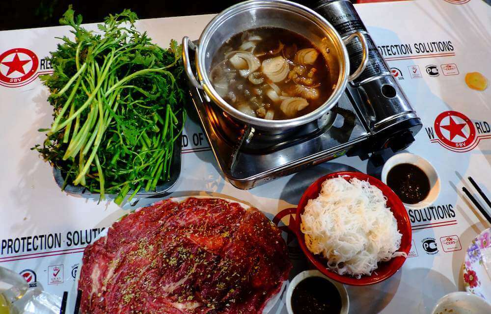 Lẩu bò nhúng mắm ruốc là món được nhiều gia đình yêu thích khi đến với du lịch Bình Dương (Ảnh: sưu tầm)