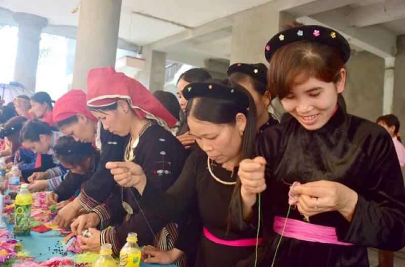 On the morning of the 7th day of the first lunar month,the Long Tong Festival begins with the "con sewing" competition. This competition showcases the skillfulness and grace of Tày girls.