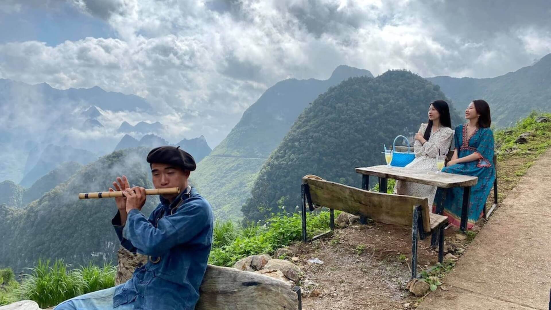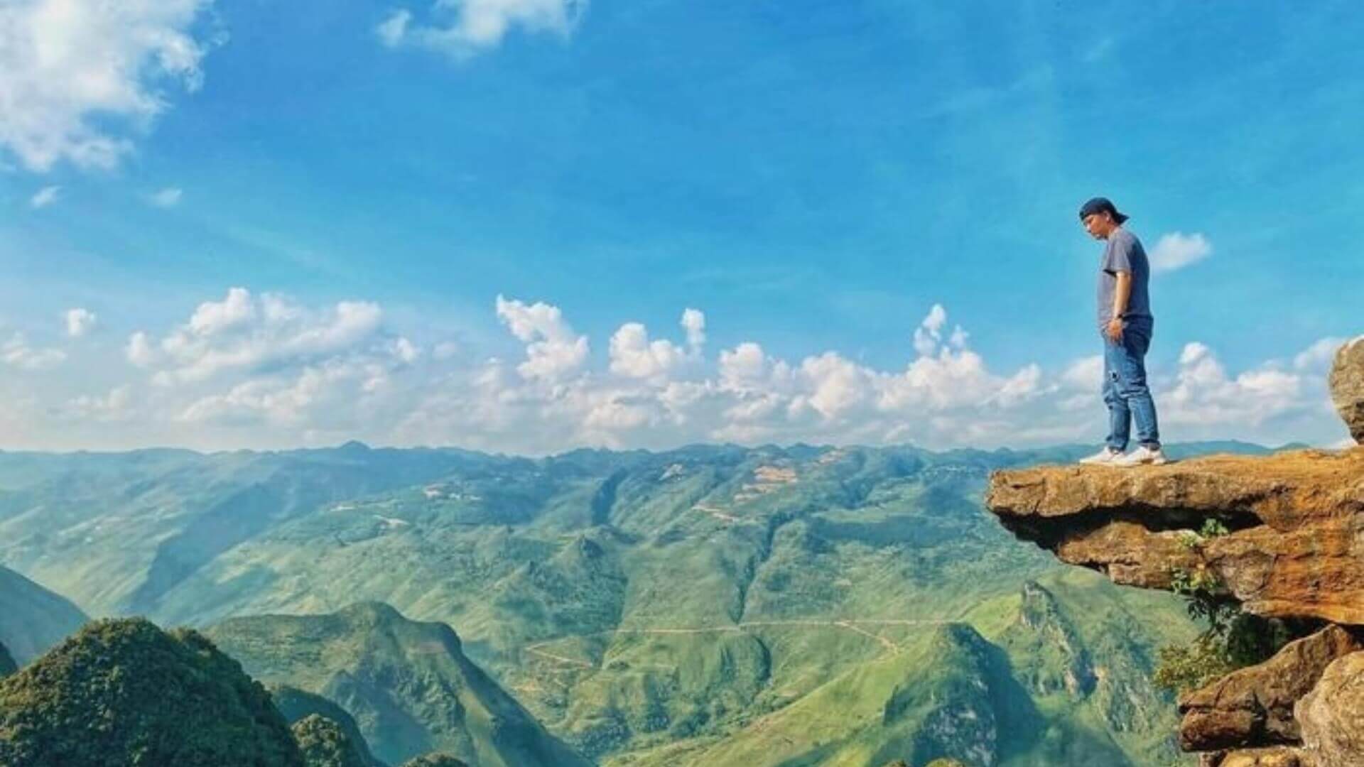 Stopping at the rest area on Ma Pi Leng Pass,visitors can gaze out and see a part of the majestic Than Cliff in Ha Giang. The cliff stands tall and imposing,precariously perched among the clouds and sky. After conquering the formidable Than Cliff,you will undoubtedly be amazed by the beauty of the mountain and the grandeur of the surrounding nature. Taking a photo with the blue sky,white clouds,the steep Ma Pi Leng Pass,and the winding,emerald-green Nho Que River cutting through the mountains will surely be a keepsake you cherish long after your Ha Giang trip.