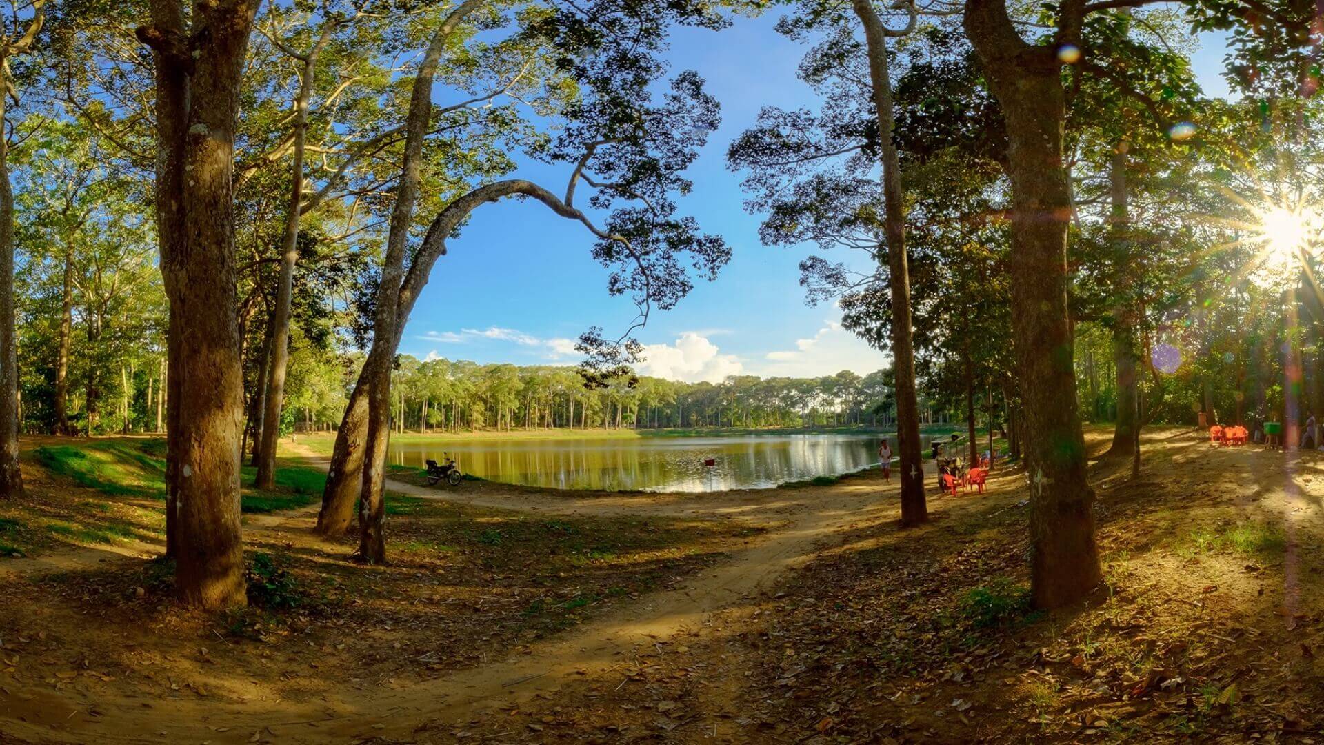 Ao Bà Om không chỉ nổi bật với những câu chuyện huyền bí mà còn sở hữu một bức tranh thiên nhiên tuyệt đẹp,làm say lòng bất kỳ du khách nào. Xung quanh ao là những hàng cây cổ thụ như sao và dầu với bộ rễ khổng lồ uốn lượn kỳ ảo,tạo nên một khung cảnh hoang sơ và thơ mộng. Bạn có thể khám phá các hang động nhỏ xinh hình thành từ những rễ cây cổ thụ,tận hưởng không khí trong lành và lắng nghe tiếng chim hót líu lo.
